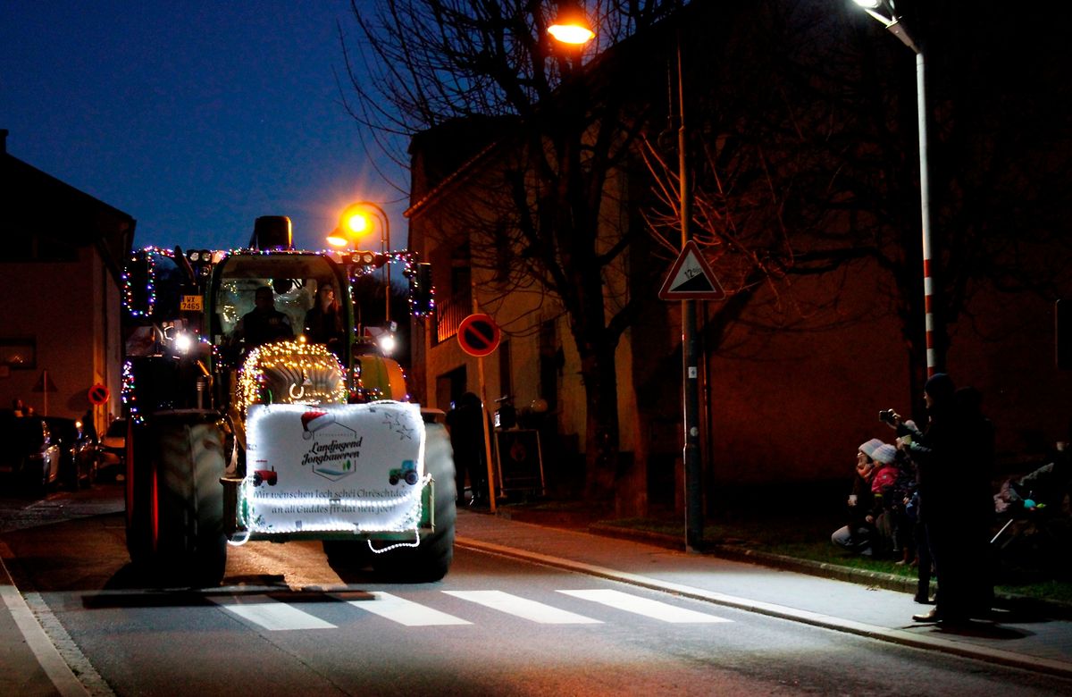 Canach. Was in den vergangenen Jahren bereits für Begeisterung sorgte, kehrte am zweiten Weihnachtstag eindrucksvoll zurück: 38 festlich geschmückte Traktoren, umhüllt von Lichterketten, Fantasie und weihnachtlicher Stimmung, rollten bei Einbruch der Dunkelheit durch den Osten des Landes. Die Aktion zauberte nicht nur den Kindern ein Leuchten in die Augen. Der farbenfrohe Konvoi wurde von der „Lëtzebuerger Landjugend a Jongbaueren“ (LLJ) im Rahmen der Christmas-Tour 2025 organisiert, die quer durch mehrere Regionen Luxemburgs führte.
