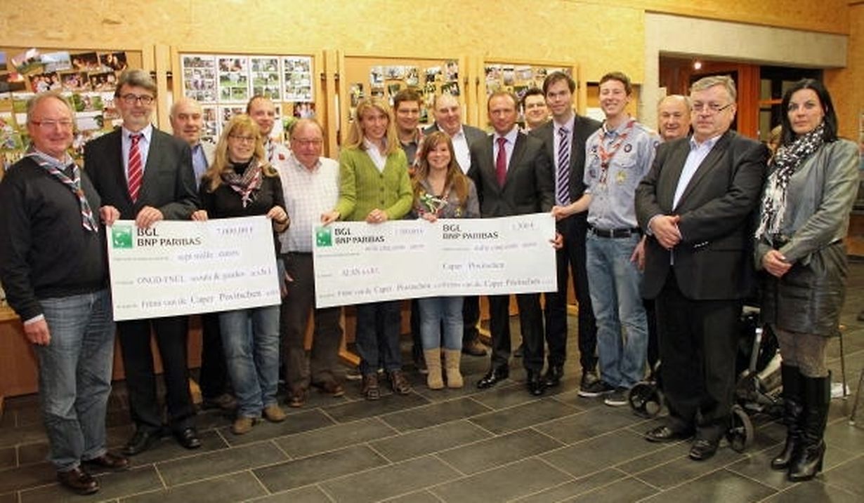 Roger Watry, Präsident der „Frënn vun de Caper Piwitschen“, beschrieb kurz die Aktivitäten der Amicale und überreichte einen Scheck über 7 000 Euro an Tun Ruppert als Vertreter des ONGD-FNEL zum Bau einer Photovoltaik-Anlage für das „Hospital an Rehabilitation Centre for Disabled Children“ in Banepa in Nepal. 1 500 Euro wurden an Shirley Feider-Rohen von der Alan sowie 1 500 Euro für die Jugendaktionen der „Caper Piwitschen“ überreicht. (c.k.)