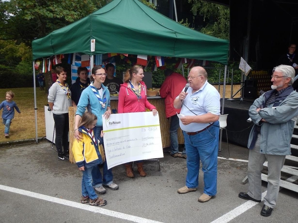 Tradition ist es seit Jahren, dass die Scoutsgruppe mit Ihrer Amicale durch eine gezielte Ostereieraktion den Erlös an die Vereinigung “Aide à l’Enfance de l’Inde” bei Gelegenheit der traditionellen Guiden & Scoutskirmes überreichen kann.