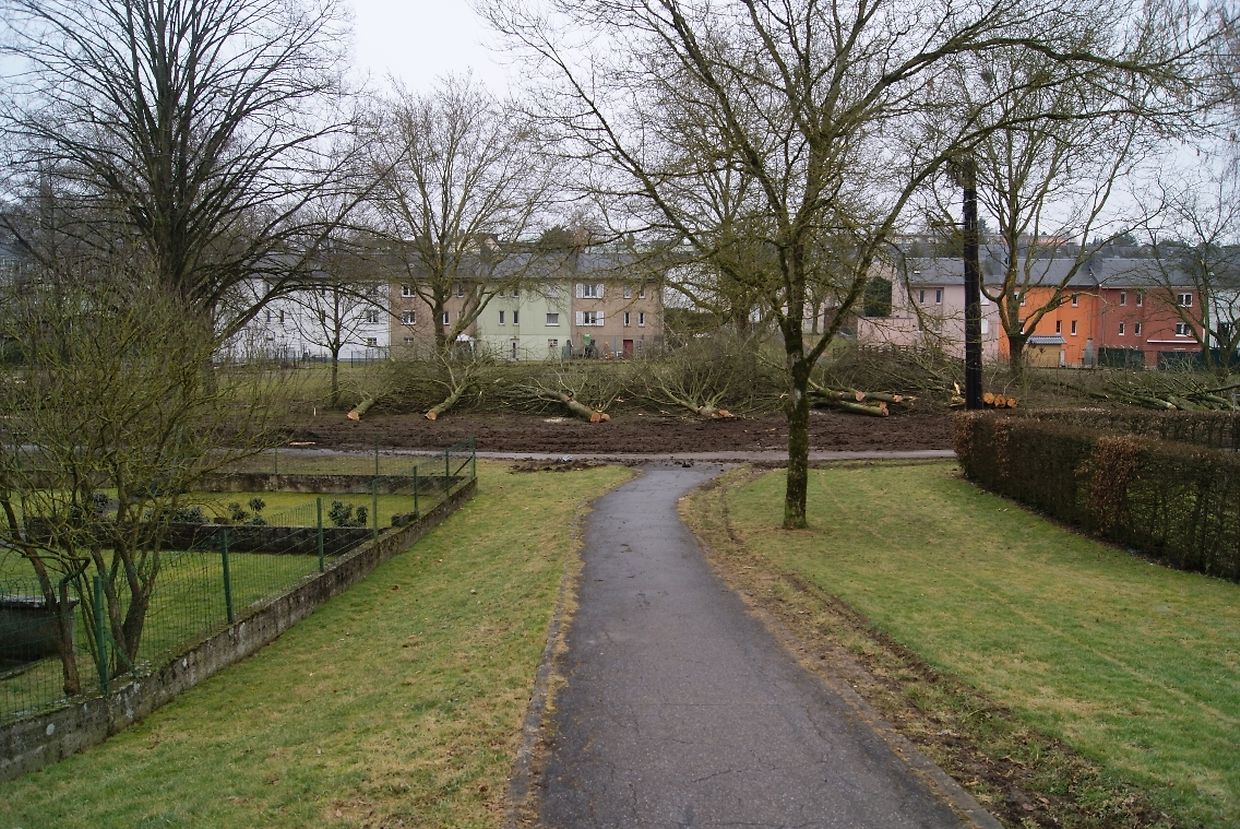 Beim Uleeen vum neien Park get gesot dass krank Beem oder Beem déi, déi aner bei wuessen stéieren misten ewech kommen. Wann een sech Biller ukuckt dann gesät et aus wéi wann déi meeschten Beem am allen Park krank oder stéieren..............