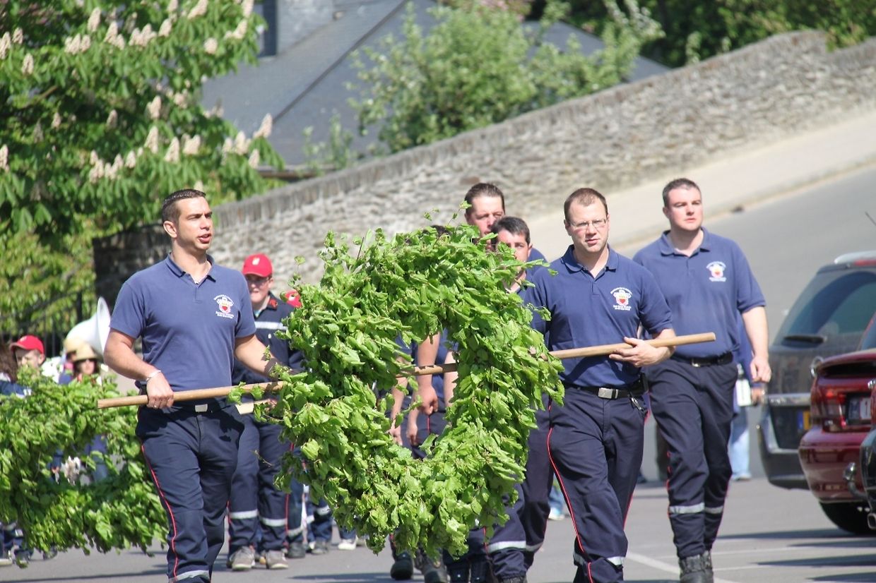 Nachdem in der frühen Morgenstunden der Maikranz gebunden worden war, zog die lokale Feuerwehr zusammen mit der Klerfer Musikgesellschaft mit ihren Maikränzen zum Marktplatz. Anschliessend begaben sich die jeweiligen Veraine in ihre Stammlokal, wo sie den Tag fröhlich ausklingen liessen.