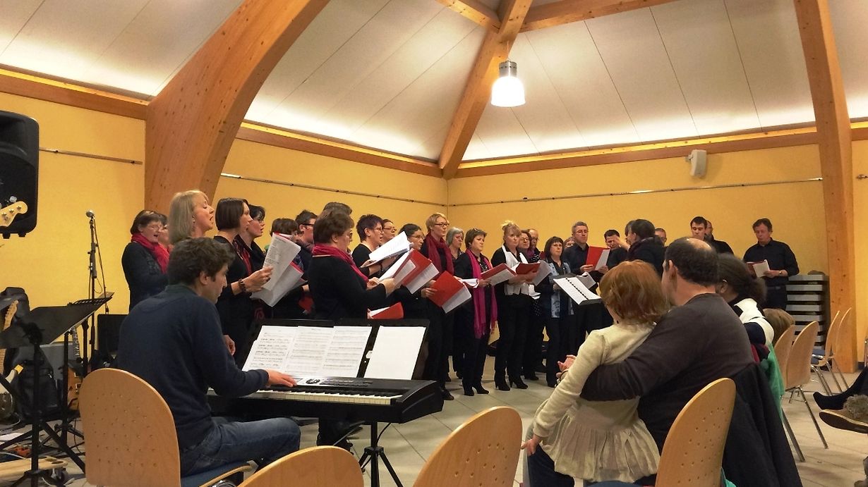 Die erste Staffel dieses Workshops neigt sich jetzt dem Ende zu. Am Montag dem 9. Dezember war das Abschlusskonzert in der Annexe vom Hall polyvalent in Clerf. Ein weiteres Konzert wird am Mittwoch den 18. Dezember in Bartringen sein, wo weitere Gesangworkshops aus dem Land ihr Abschlusskonzert geben. Der Workshop stand unter der Leitung von Annick Hermann. Annick hat eine bemerkenswerte Arbeit in den 12 vergangenen Wochen geleistet. Das Ziel der 'Choir Factory' ist moderne Musik in den Chorgesang einzubringen. Das Programm führte durch die Welt des Blues, Rock/Pop bis hin zum Musical und hat grosse Begeisterung beim Publikum ausgelöst. Eine Combo der Musikschule unter Leitung von Olivier Stalon mit Mario Paquet am Keyboard hat den Auftritt begleitet.