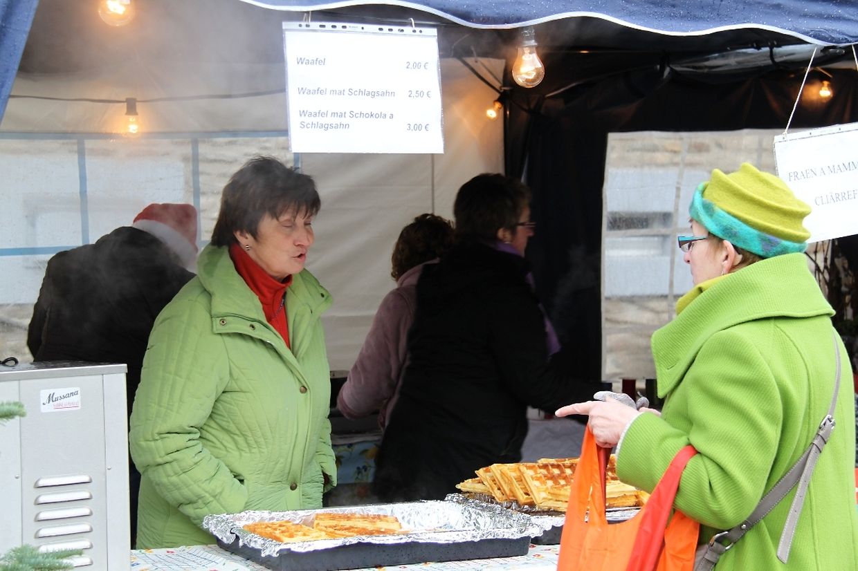 Wei op villen Platzen am Land war och den 12 Dezember zu Klierf Chrëschtmaart. Op hiren Stänn hunn d Veräiner vun gebastelter Chrëschtdekoratioun iwwert Glühwäin,Kotletten an gegrilltem Poulet alles ugebueden wat typesch vir een Chrëschtmaart ass. Sou richteg Chrëschtdagsstëmmung opkomm wei d Klierfer Musik vun 16:00 Auer un en Tour iwwert den Chrëschtmaart gemaach huet.