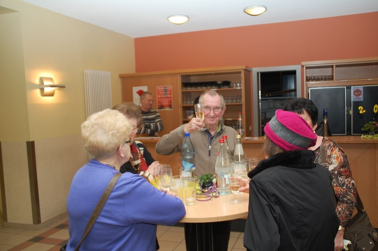 Rund 130 Seniorinnen und Senioren aus den 9 Trägergemeinden des Club Senior Nordstad, sowie darüber hinaus, hatten sich am Nachmittag des 10. Januar 2013 im Centre Culturel von Colmar-Berg zum Neujahrsempfang des Club Senior Nordstad versammelt. Nach der offiziellen Begrüssung durch Edouard Peiffer, den Sekretär der ASBL, Bürgermeister Gast Jacobs und Barbara Wiesen-Pankratz, Direktionsbeauftragte des CS Nordstad wurde auf das neue Jahr angestossen.