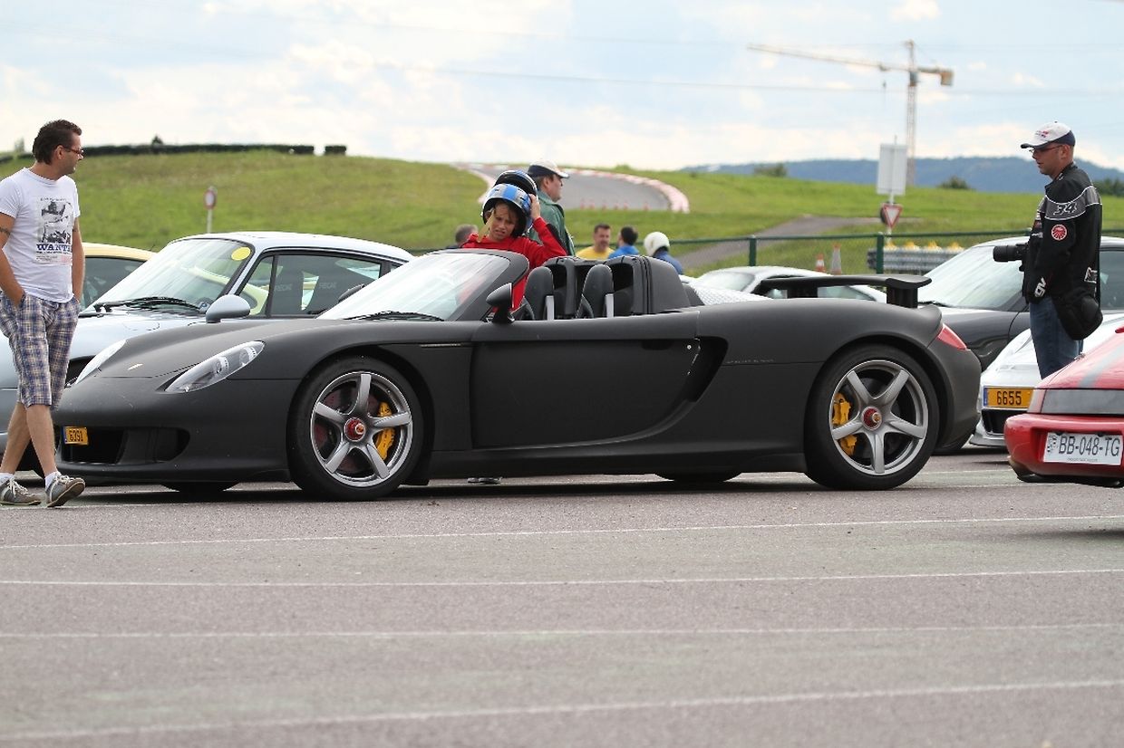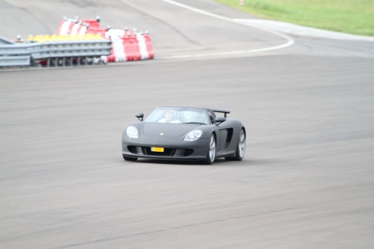 Nur für einen mußte man etwas tiefer in den Geldbeutel greifen, da kosteten die drei Runden 100 Euro. Doch da lohnte sich jeder Cent. Hierbei handelte es sich um einen Porsche Carrera Gt, dessen Preis bei ungefähr bei 450000 Euro liegt. Dass der Wagen sich auf der Rennstrecke wohlfühlt, konnte man deutlich hören wenn er bei Start und Ziel vorbei schoss. Der Supersportwagen hat einen V10 Motor mit 612 Ps, mit denen der Wagen sich von 0 auf 100 in 3,8 Sekunden katapultiert. Der Wagen wurde von keinem anderen als der Rallye-Legende Walter Röhrl abgestimmt. So war es auch nicht erstaunlich, dass es sich viele Besucher nicht nehmen ließen in dem Exoten drei Runden um die Piste zu heitzen.