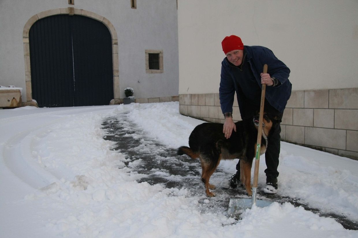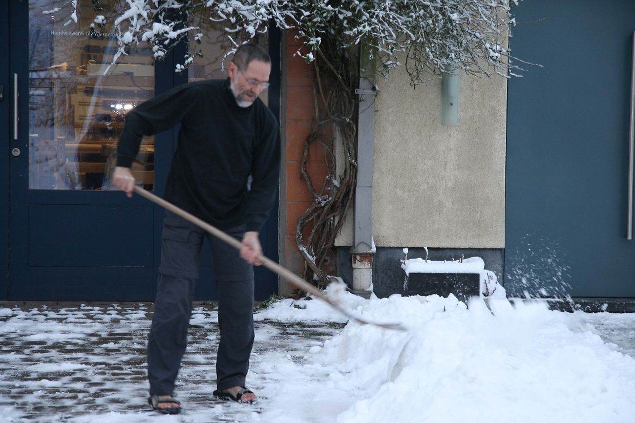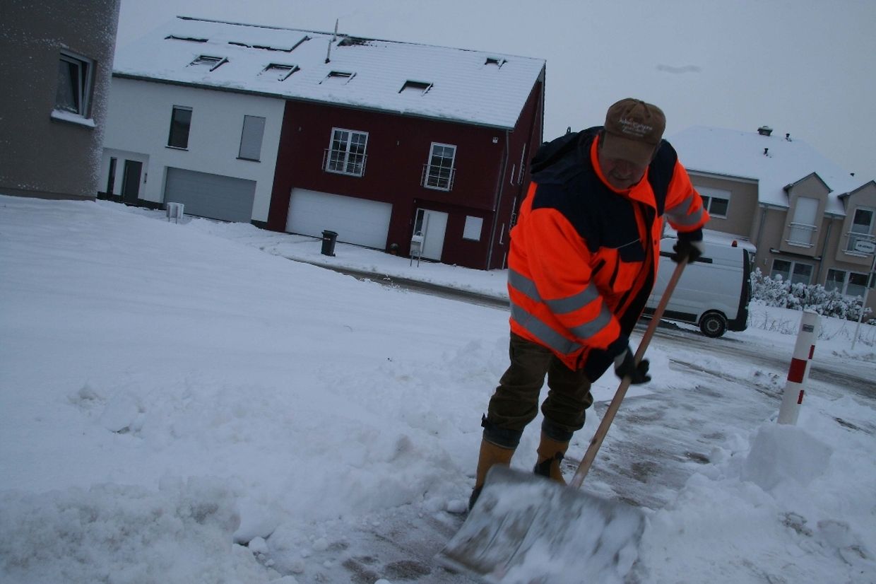Den Arbeitern der Gemeinde und des Syrdallsyndikats brachte der Schnee vom Mittwoch auch am nächsten Morgen noch jede Menge Arbeit. Straßen und Bürgersteige zu räumen erwies sich als besonders schwierig, da der frische Schnee fest gefroren ist. Und wenn dann zu allem Überfluss auch noch die Hydraulik einer neuen Maschine ausfällt, verzögern sich die Arbeiten weiter.