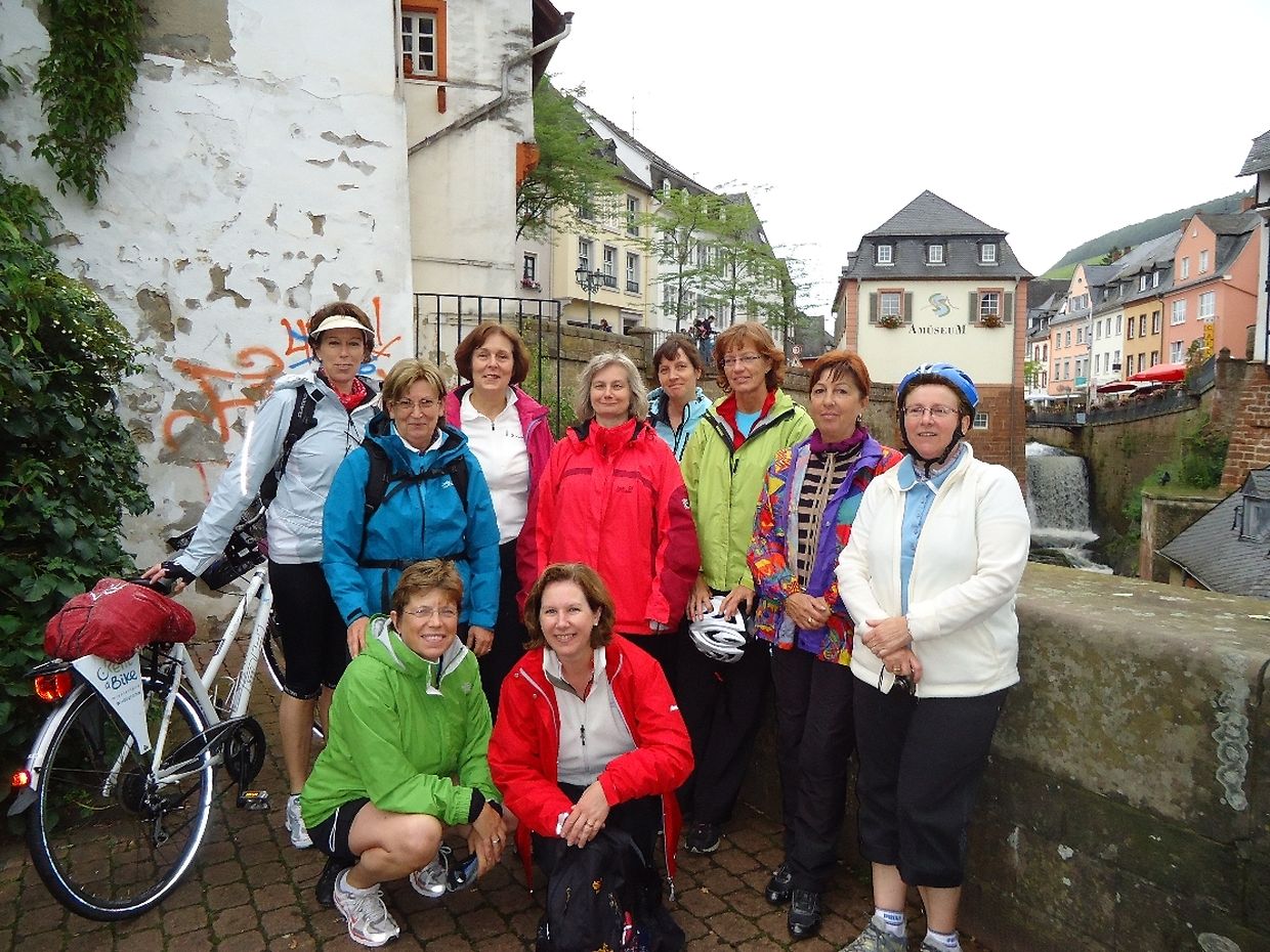 Mit den komfortablen Rädern, welche alle mit einer 24 Gangschaltung ausgestattet waren, wurde die Mosel von Wasserbillig zur deutschen Ortschaft Oberbillig mit der Schiffsfähre überquert. Von hier aus führte der Radweg die 10köpfige Damengruppe zuerst in Richtung Trier und dann an der Saar entlang bis ins 20km entfernte kleine Städtchen Saarburg.