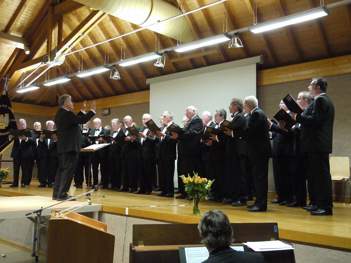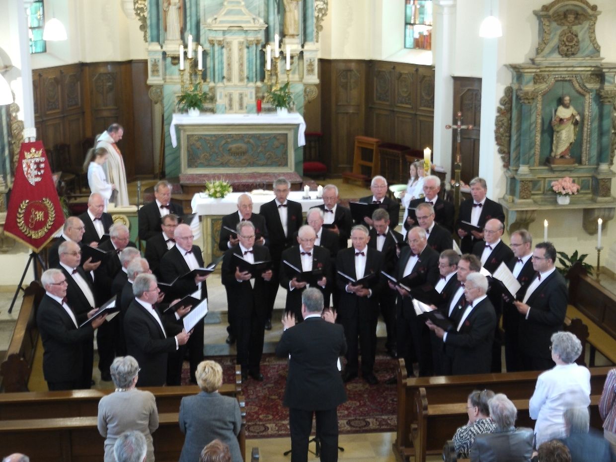 Gelegentlich der Vorstellung der 612 Seiten starken Festschrift zum 150. Jubiläum der ‚Chorale Ste Cécile Éiter-Schraasseg’ trug letzten Freitag der ‘Gäöls Mannenkoor’ unter der Leitung von Paul Mestrom ein abwechslungsreiches Konzert mit klassischen und modernen Melodien vor. Die Gestaltung der Sonntagsmesse in der Oetringer Pfarrkirche mit u.a. der vierstimmigen Messe von Ch. Gounod konnte die Darbietung vom Freitag gar übertreffen.