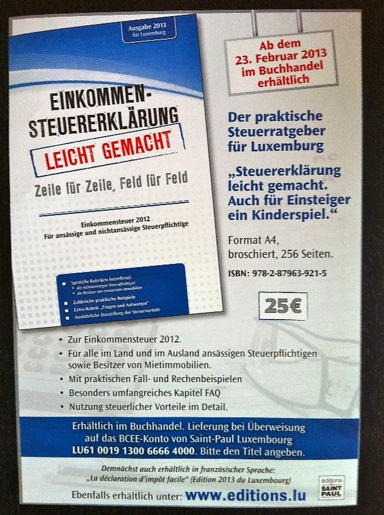 EINKOMMEN-STEUERERKLÄRUNG LEICHT GEMACHT , féiert duerch den Owend mat detailléierten Explikatiounen. Brengt dofir w.e.g. ären Steierziedel mat.