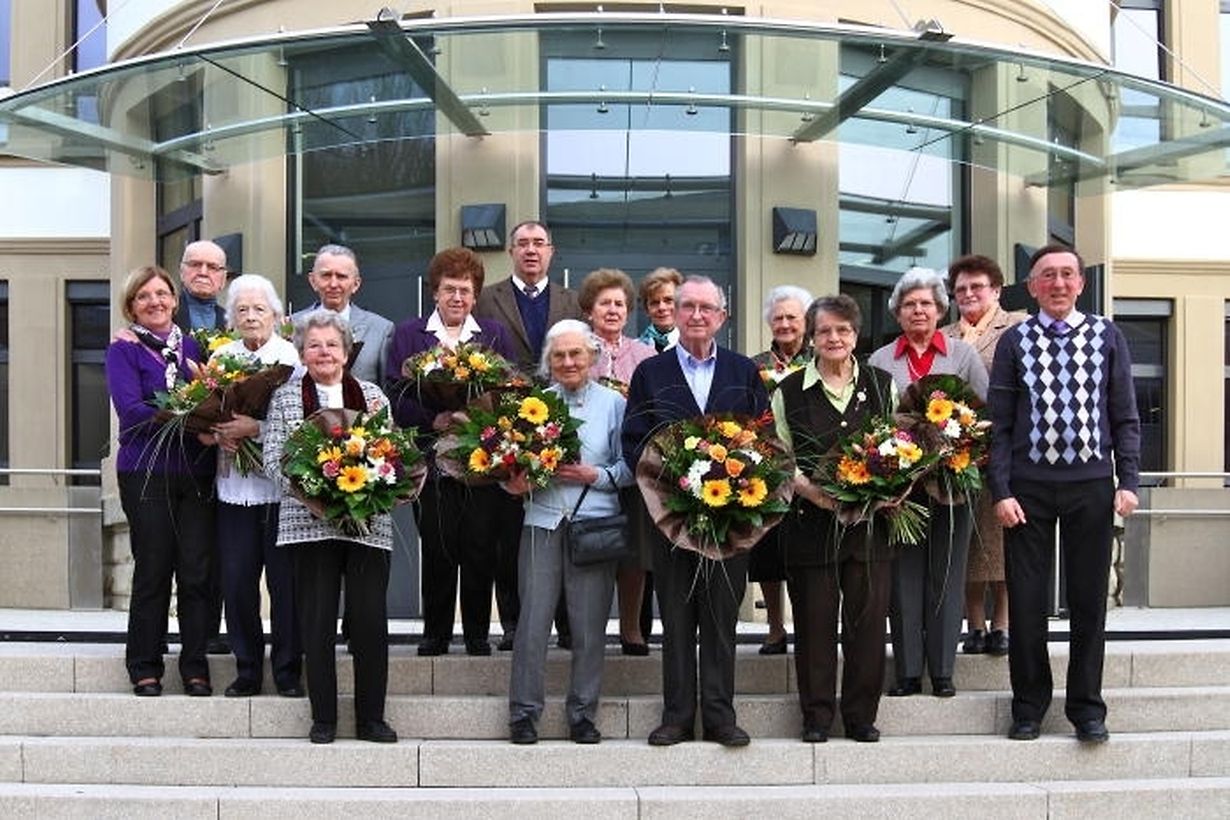 Im Anschluss wurden die folgenden 80- und über 90-jährigen Jubilare mit einem Geschenk bedacht: Irène Cuny-Winandy, Metty Dunkel-Winandy, Victorine Gonner-Wampach, Mathilde Heirens, Jean-Pierre Steffen und Albertine Wagner-Streber (80 Jahre); Marie Origer-Scheeck (90 Jahre); Marie Barthel-Schartz, Marie Heirent, Marie Krombach-Delvaux, Maisy Moulin-Weber und Hubert Simon-Molitor (über 90 Jahre).