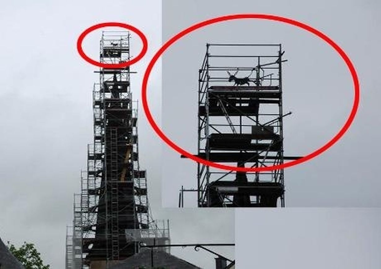 Im Zuge der Renovierungsarbeiten der Alten Kirche wurde nämlich auch der ,,Kierchhinnchen'' ersetzt, und zwar nicht etwa durch einen neuen Gockel, sondern einen ... Esel. Der Esel ist bekanntlich so etwas wie das Markenzeichen der Stadt Diekirch. Dass die Gemeindeverantwortlichen jetzt tatsächlich einen Wetteresel statt einen Wetterhahn installieren ließen, wird die Bevölkerung aber sicherlich nicht gleichgültig lassen.