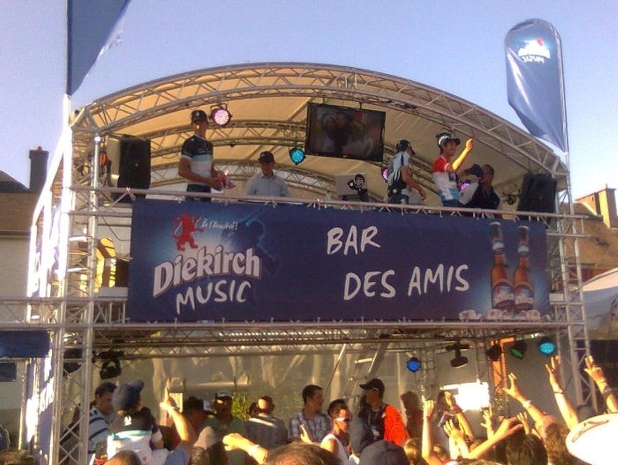 Frank Schleck, vainqueur de l'épreuve, s'est présenté avec son frère Andy à la tribune du Bar des Amis. Construit aux couleurs de Diekirch et arborant un logo spécialement imaginé pour les 140 ans de la marque, cet espace de détente a accueilli après l'épreuve les invités VIP dans une ambiance lounge avec set musical assuré par un DJ.