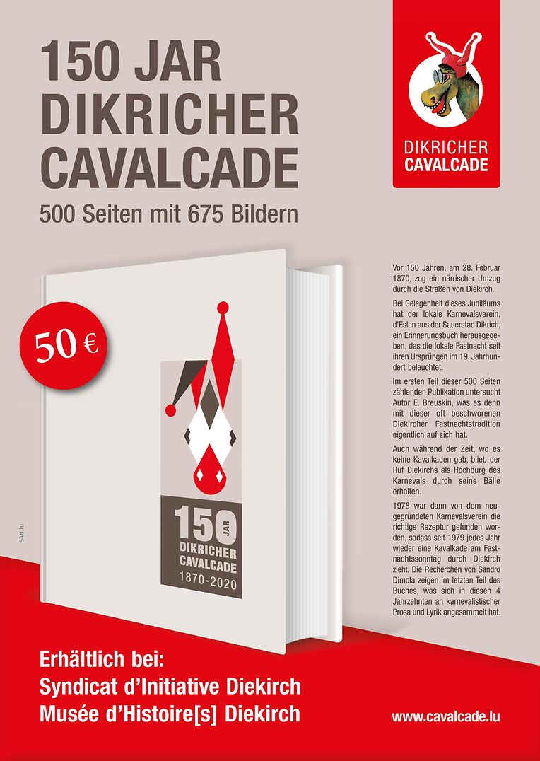 Mir invitéieren Iech all den 20.02. op eis Ausstellung mam Thema 150 Jar Dikicher Cavalcade an d‘Virstellung vum Buch an der CD.