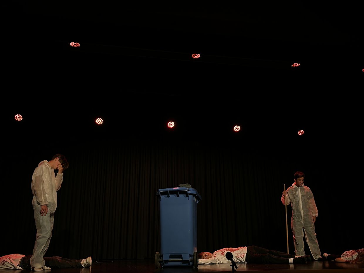 Lors de la deuxième partie de la soirée, les jeunes acteurs et actrices présentèrent une adaptation moderne d’Antigone (Si je crève, ce sera d’amour d’Axel Cornil) qu’ils et elles avaient eu l’honneur de jouer au Festival Internazionale del Teatro Classico dei Giovani