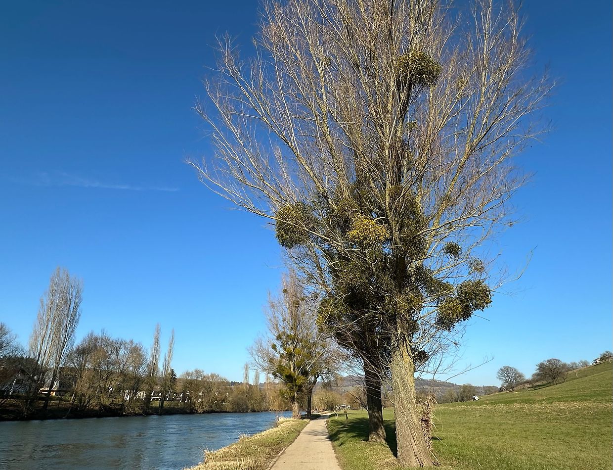 C'est clair, le gui épuise son hôte. Le peuplier a moins de feuilles et de branches en 2023.