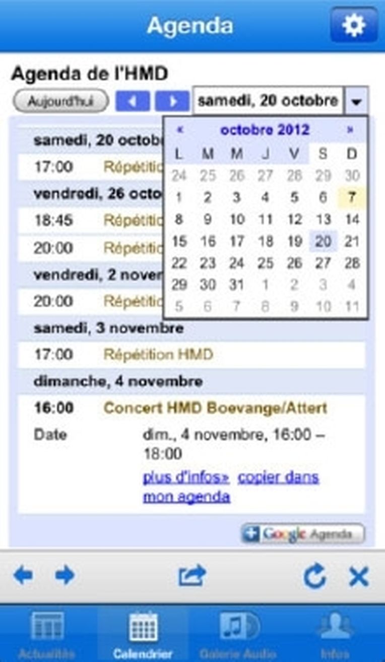 • de consulter le calendrier en mode liste, semaine et mois des deux formations musicales