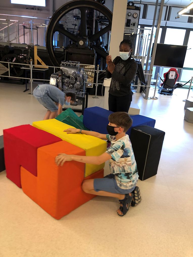 Ganz besonders begeistert waren die jungen Musikanten darüber, dass sie ein tonnenschweres Fahrzeug mit ihrer eigenen Muskelkraft heben konnten.