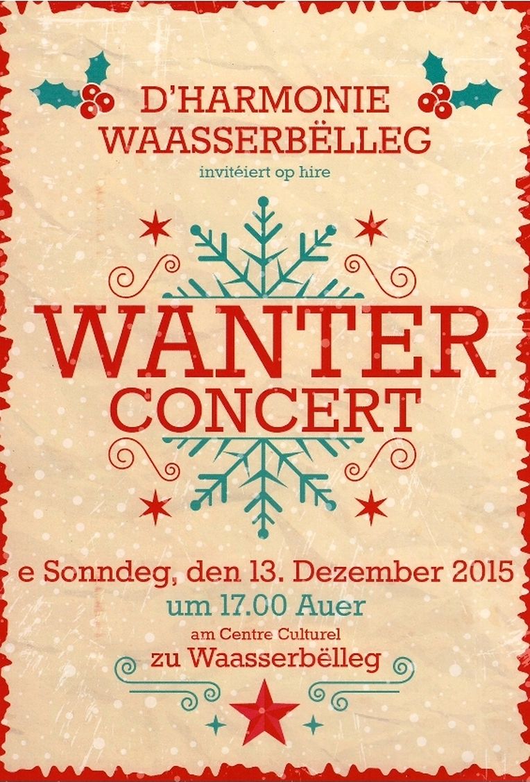 Alle, die es versäumt haben an dem gelungenen Konzert teilzunehmen und das Programm dennoch hören wollen, haben die Gelegenheit dies am 13. Dezember 2015 um 17h00 im Kulturzentrum in Wasserbillig nachzuholen. Anlässlich des Winterkonzerts der Harmonie Wasserbillig mit freiem Eintritt, darf die HMDifferdange den ersten Teil mit diesem Programm unter der Leitung von Gilles Krein bestreiten. Der zweite Teil des Konzerts wird aus der Darbietung der Harmonie Wasserbillig bestehen. Die Leitung unterliegt hierbei der Dirigentin Nadine Billa.
