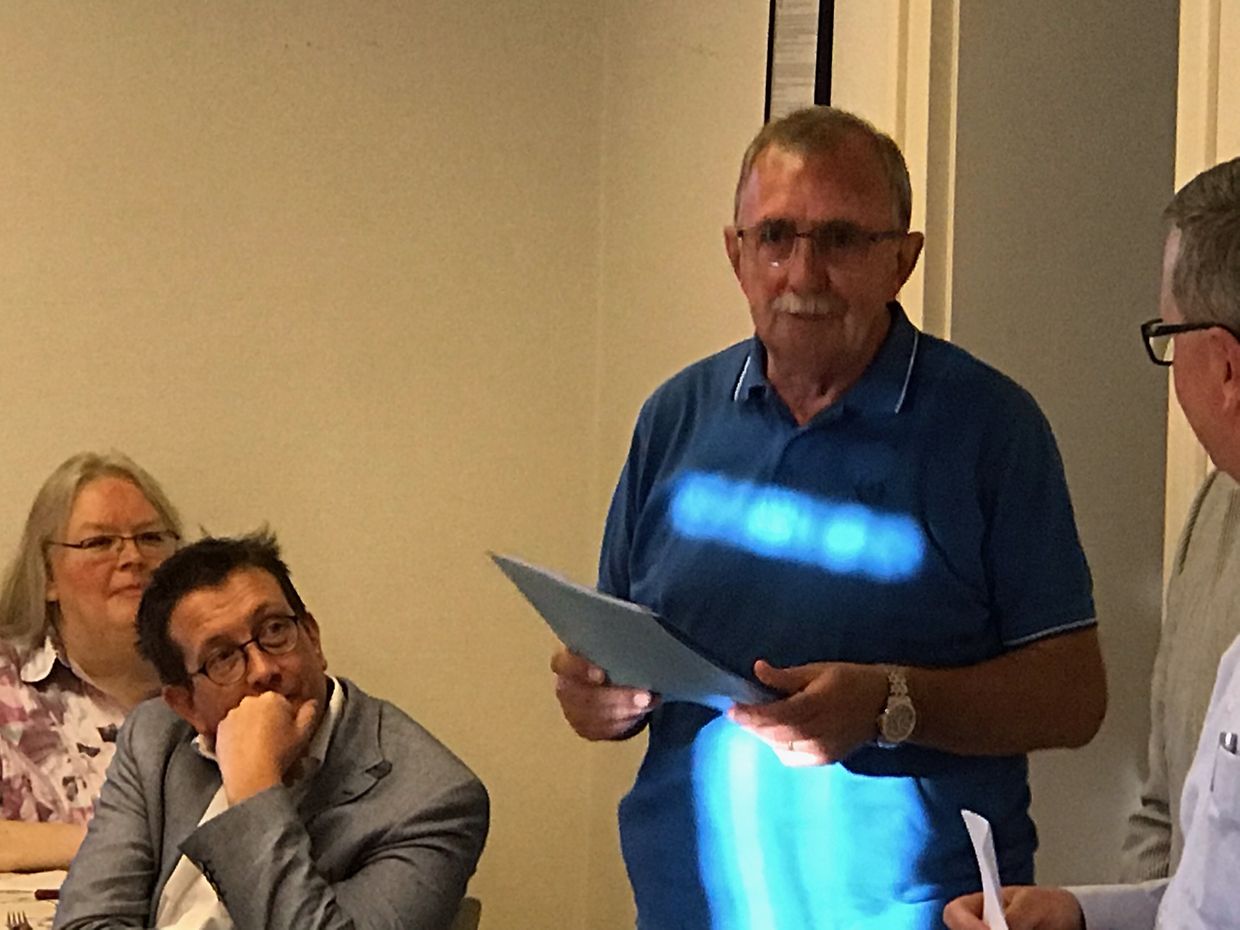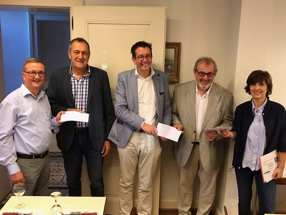 Nach einem kurzen Rückblick auf die geleistete Arbeit und den Dankesworten an alle die zum Erfolg des Festes beigetragen hatten ergriffen die Vertreter der jeweiligen Hilfsorganisationen das Wort und erläuterten den Anwesenden die Aktivitäten die sie im Rahmen ihres Engagements anbieten und somit den notbedürftigen Menschen helfen. Es handelt sich dabei um die ONG „Guiden a Scouten fir eng Welt“, die „Epicercies sociales“ der Caritas, sowie die „Fondation Maison de la Porte Ouverte“. Jede der drei Organisationen nahm eine Spende von 3.000 Euro entgegen. Die Verantwortlichen bedankten sich herzlichst für diese Unterstützung und versicherten, dass das Geld sinnvoll in die Infrastrukturen und Aktivitäten investiert werden würde.