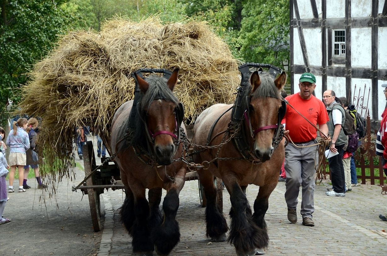 Seit Jahren sind die 1985 erstmals begangenen Tage „Nach der Ernte" mit Arbeitsdemonstrationen und Vorführungen verbunden, bei denen jede Menge schwere Arbeitspferde, aber auch alte Traktoren und Landmaschinen sowie Kuh- und Ochsengespanne zum Arbeitseinsatz kommen.