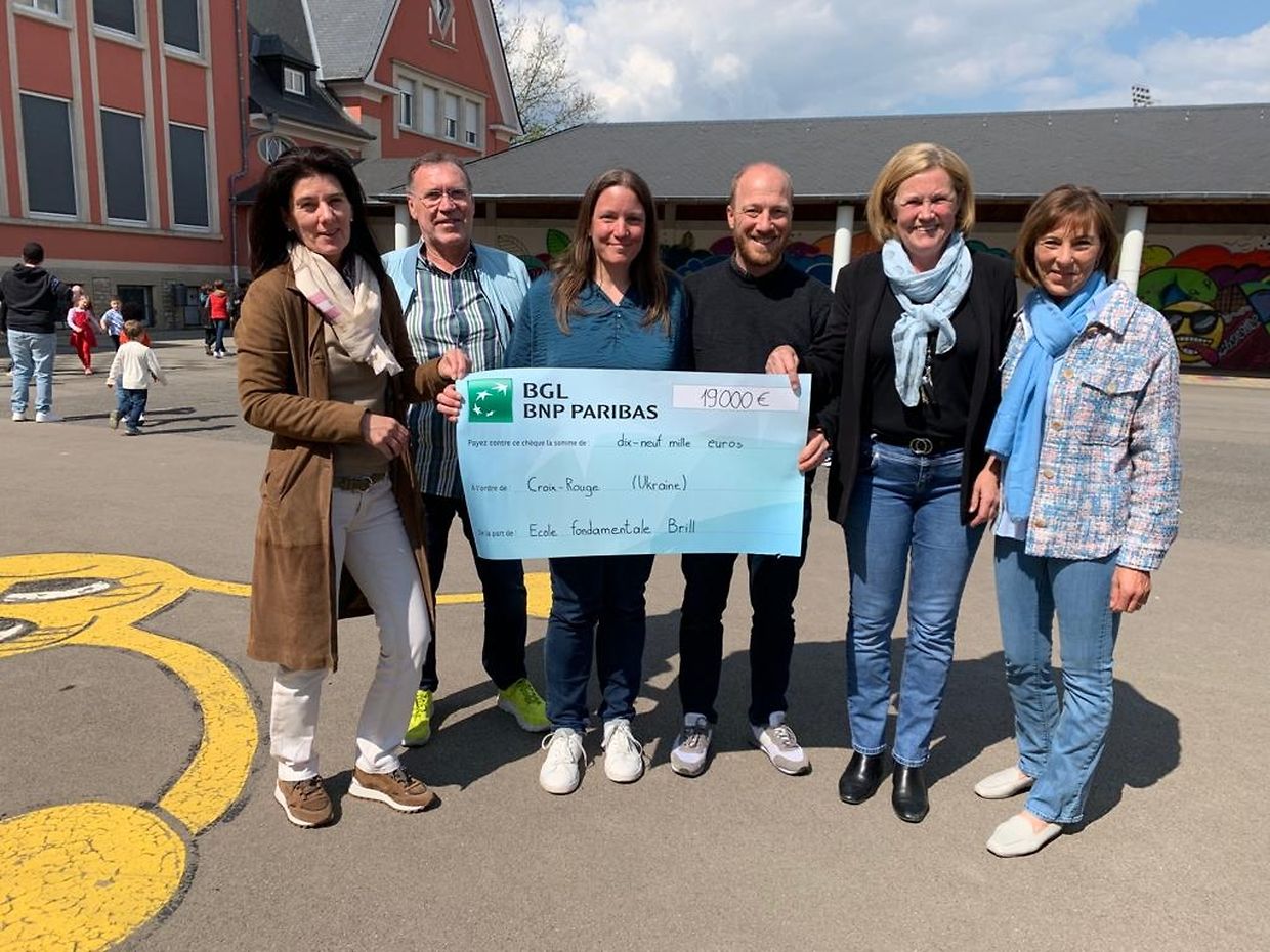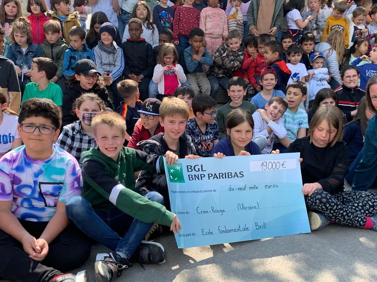 Sie wollten konkret etwas für die notleidenden Menschen in der vom Krieg betroffenen Ukraine tun. Deshalb organisierten die Schüler der Düdelinger Schule Brill zusammen mit ihrem Lehrpersonal einen Charity Run, um Geld zu sammeln. Auf diese Weise kam die beachtliche Summe von 19 000 Euro zusammen. Das Geld überreichten die Kinder an das Rote Kreuz. Für die Hilfsorganisation nahm die Präsidentin der Lokalsekton Düdelingen, Josiane Di Bartolomeo-Ries, zusammen mit Mitgliedern des Vorstands die Spende in Empfang.