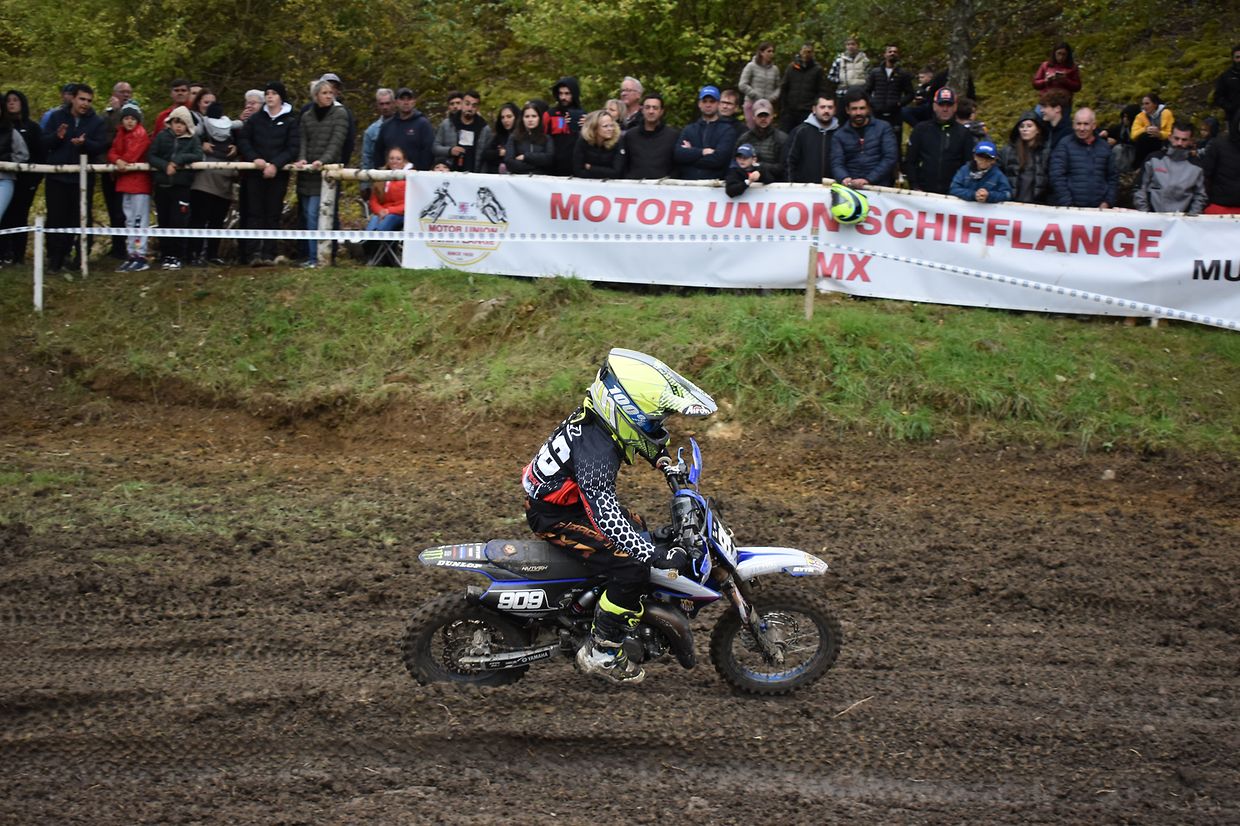 Heftige Regenschauer in der Woche vor dem Motocross der Motor Union Schifflingen in Düdelingen hatten den Aufbau der Veranstaltung erschwert, doch am Rennsonntag war die Piste wie erwartet in einem einwandfreien Zustand. Die gefürchtete Schlammschlacht war ausgeblieben, und über Zuschauermangel konnte man sich auch nicht beklagen. Wenn auch etwas weniger als in den Vorjahren, so hatten dennoch über 150 Fahrer aus neun Nationen in sieben Rennen ihre Nennung abgegeben. Dabei lag das Augenmerk auf den Klassen Elite MX1 und MX2, die gemeinsam ans Startgitter gingen. Im ersten Lauf hieβen die Sieger Damien De Muyser (MX1) und Ruben Ferreira Caetano. Dieser entschied auch den zweiten Lauf der MX2-Klasse für sich, derweil bei den MX1 diesmal der Sieger Dexter Theunis hieβ.