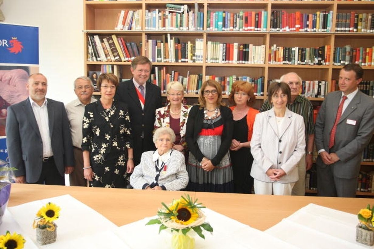 Blumen und ein Geschenk überbrachte auch Familienministerin Marie-Josée Jacobs. Außerdem heftete sie Suzanne Flammang-Feltrini einen Verdienstorden an. Sie gratulierte im Namen von Großherzog Henri und Großherzogin Maria Teresa sowie der Regierung. Marie-Josée Jacobs wies auch darauf hin, dass sich das Geburtstagskind trotz seines hohen Alters noch immer einer guten Gesundheit erfreut.