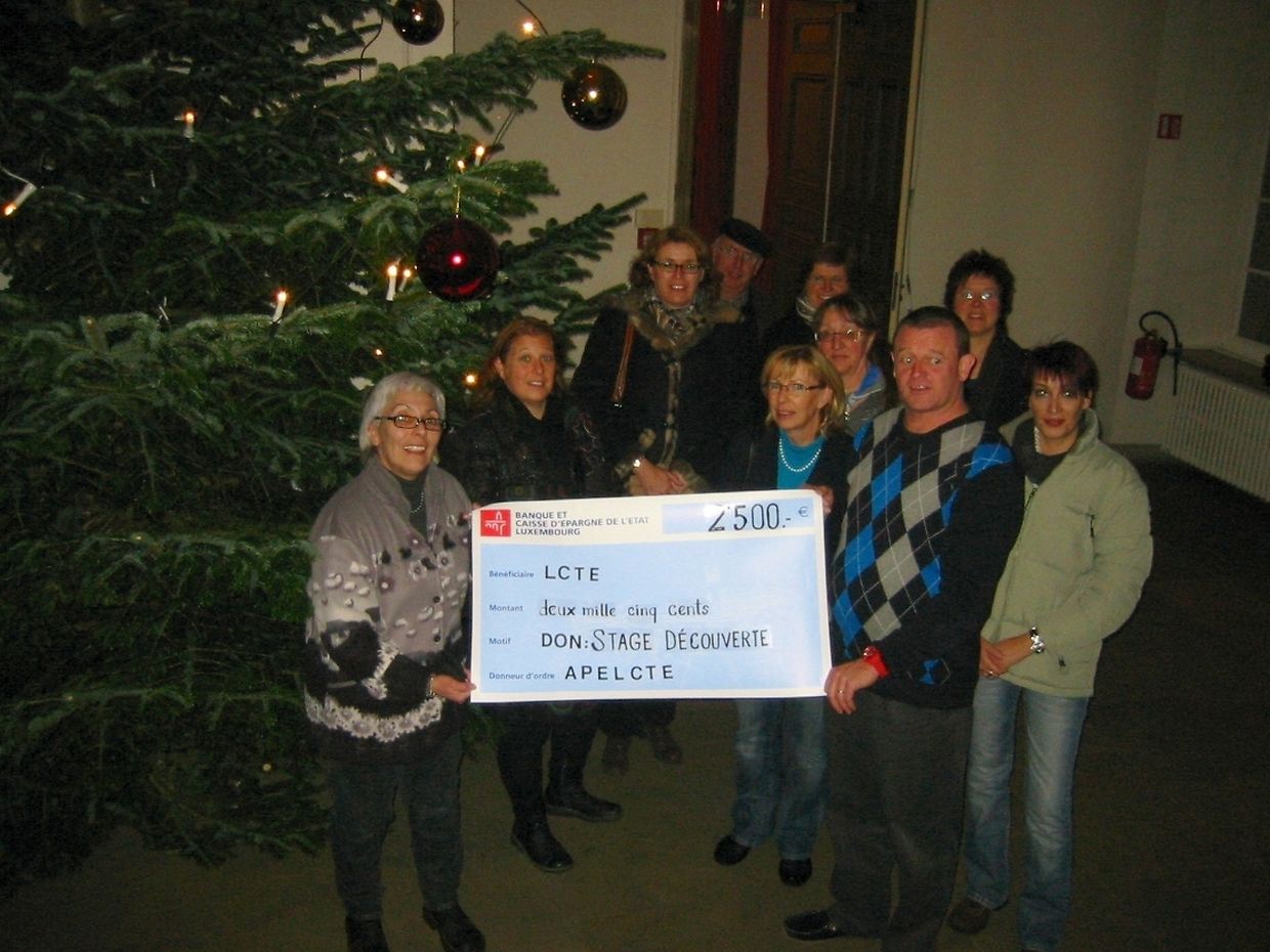 Als Beihilfe zur Finanzierung der jährlich für die "neuen" Studenten der Septima stattfindenden "Stages Découvertes" legte die Elternvereinigung des Lycée Classique et Technique Echternach, APELCTE a.s.b.l. einen Scheck über 2.500.-€ unter den Christbaum des Echternacher Lycée.