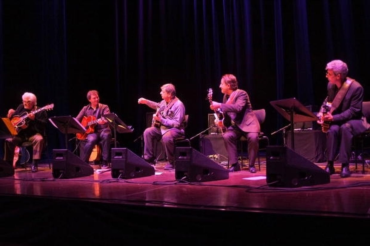 Im letzten Drittel des Konzerts saßen dann wieder fünf Gitarristen als „Gleiche unter Gleichen“ nebeneinander auf der Bühne. Es wurde kein Starkult betrieben, sondern die fünf Instrumentalisten kommunizierten dank ausgefeilter Arrangements tatsächlich musikalisch. Die zweite Zugabe schließlich, Miles Davis’ „Boplicity“, geriet schon zu einer kleinen Jam-Session. So erinnerte die „Night of Jazz Guitars“ in ihrer klassischen Schönheit und als Hommage an die Instrumentaltradition – wohl nicht zufällig – an die Formel des Gitarren-Trios Al DiMoela/John McLaughlin/Paco de Lucia auf deren inzwischen zum Klassiker avancierten Live-Album „Friday Night in San Francisco“ von 1981. (Text: Wolf von Leipzig / Fotos: Willy De Jong)