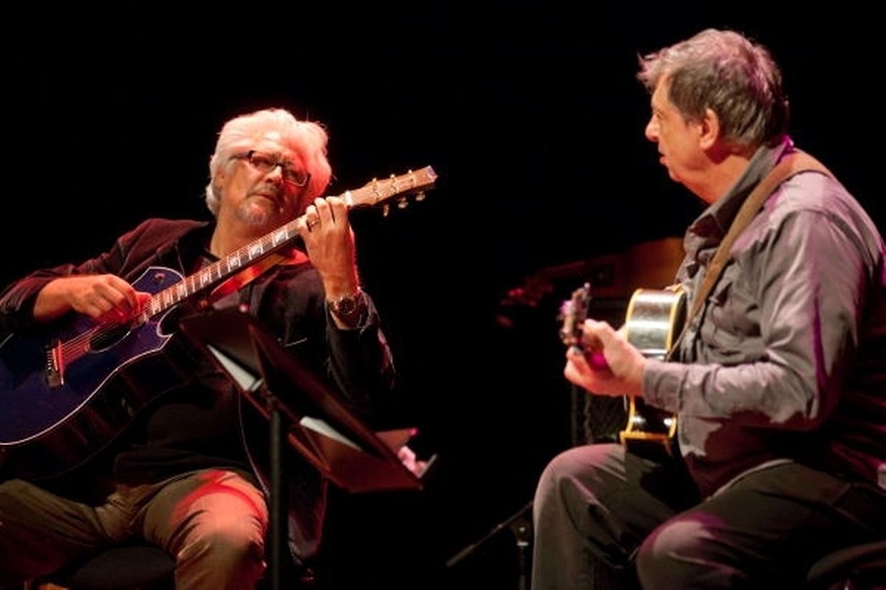 Zu Beginn des zweiten Drittels des Konzerts verließen Coryells Ko-Musiker die Bühne, die dann Philip Catherine betrat, bevor beide im Duo zu spielen begannen. Der von Coryell als „Meister des romantischen Stils“ angekündigte belgische Gitarrist ist ein wahres „monstre sacré“. Den massigen Körper über sein Instrument gebeugt, entlockte Catherine seiner Gitarre Klänge voller Gefühl, wie nur er es fertigbringt. Dabei ergänzen sich der eher unsentimentale Stil des Amerikaners, mit der an Wes Montgomery erinnernden, belegten Spielweise, und der von der „europäischen Schule“ beeinflusste, unverwechselbare, melancholische Stil des Anglo-Belgiers vorzüglich. So entpuppte sich der zweite Titel, Catherines Hommage an den Gitarristen „René Thomas“, als einer der musikalischen Höhepunkte des Abends.