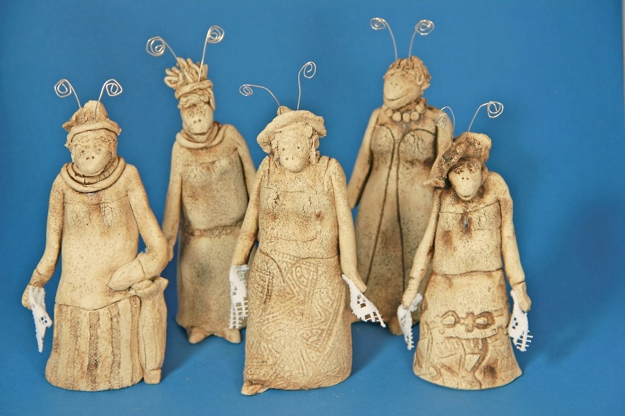 Die Hobbykünstlerin Antoinette Barthelemy-Lampertz aus Schandel, gestaltet 55 dieser Exemplare in Handarbeit. Die in Ton gebrannten, etwa 22cm hohen Figuren, sind alles Einzelexemplare.
