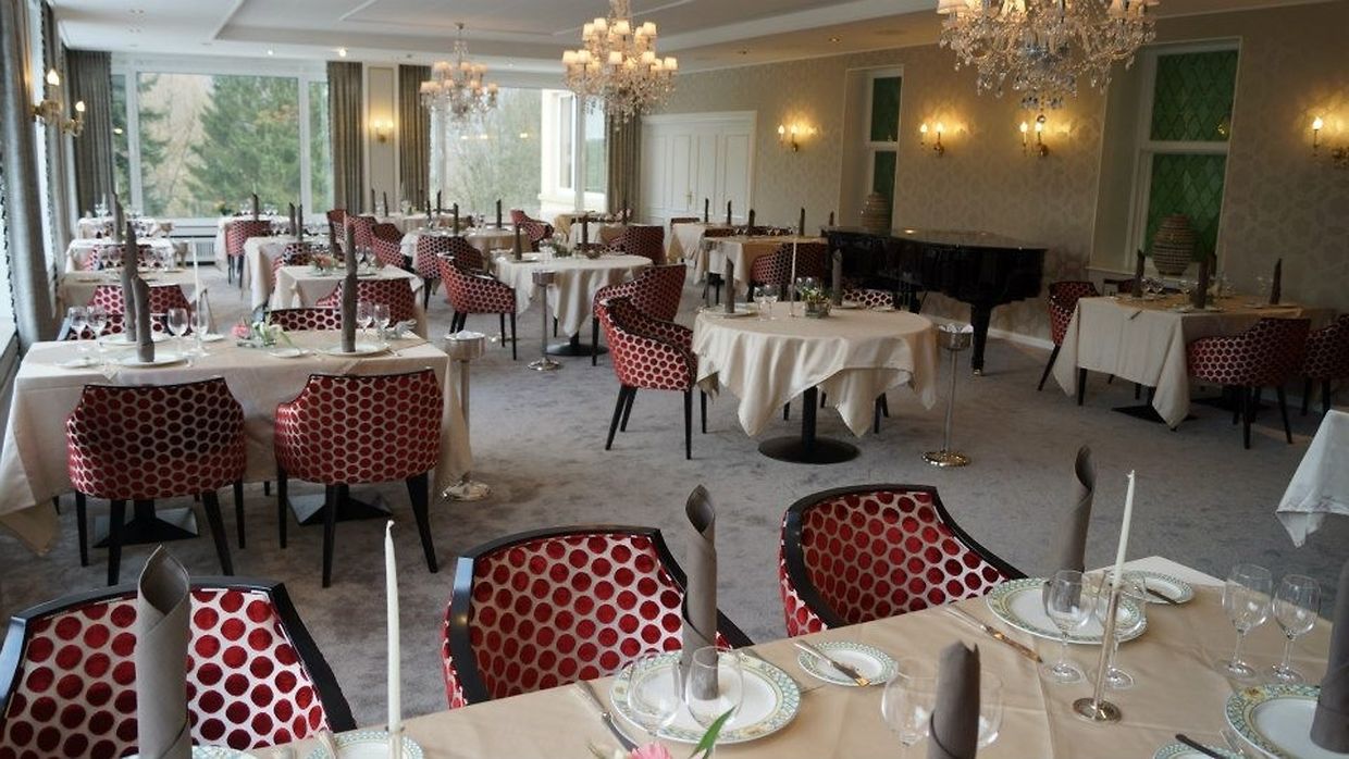 Ein schickes Gourmet-Restaurant "La Vie en Rose",das sich auch hervorragend für Geschäftsessen oder kleinere Banketts eignet.Das etwas grössere "Les Jardins Gourmands" mit wunderschöner Aussicht über das hoteleigene Parkanwesen, was auch für Famillienfeier oder Hochzeiten ideal genutzt werden kann. "Les Terrasses Fleuries" befindet sich im Neubau des Hotels, mit grosser Terrasse. Hier haben die Gäste eine Auswahl von eher bürgerlicher Küche in der Brasserie- Menükarte. Neben den Restaurants gib es aber auch 2 Bars, im Hauptgebäude an der Rezeption lädt die Bar "Le Lion" zum Apéritif ein. In der glamourösen Piano-Bar kann man auch nach dem After-Work-Wellness sein Erfrischungsdrink bei gemütlichem Ambiente geniessen.