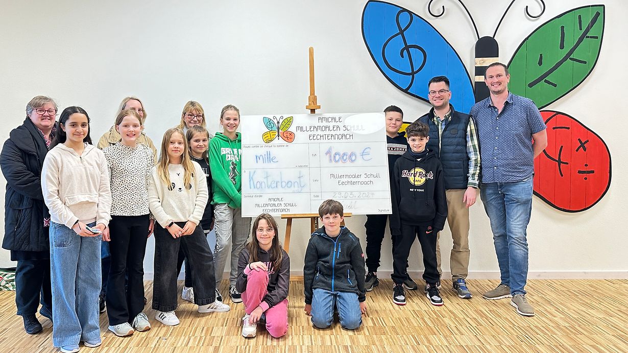 D’Amicale aus der Millermoaler Schull vun Iechternach (AMSE) huet en Don am Wäert vun 1000 Euro fir d’Associatioun „konterbont“ iwwerreecht.