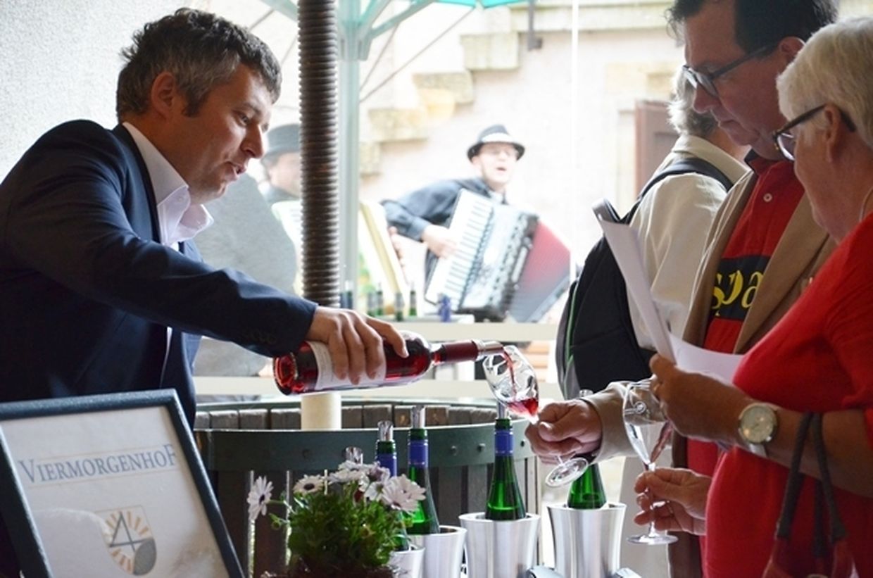 Les organisateurs – un groupe de travail composé de membres de commissions consultatives d’intégration du Miselerland – se sont rencontrés depuis le mois d’octobre dernier pour préparer cette nouvelle édition qui proposait quelques innovations. Parmi les acteurs régionaux présents, la distillerie Zenner (Schwebsange) a fait son apparition cette année et proposait de reconnaître au nez différents marc de raisin. Le « Food Truck » proposait à tous les participants un Burger « régional » et d’autres spécialités pour régaler les estomacs. 6 domaines viticoles étaient présents cette année : Viermorgenhof (Kinheim, Allemagne), Schloss Thorn (Palzem, Allemagne), Clos Mon Vieux Moulin (Ahn, Luxembourg), Weingut Nick Köwerich (Leiwen, Allemagne), Jongwënzer Vinsmoselle (Luxembourg) et Kirchengut Wolf (Traben-Trarbach, Allemagne). Tous ont souligné avoir rencontré un grand intérêt de la part des participants. Anne-Catherine Mondloch, Marie-Thérèse Sibenaler et Götz Feige respectivement oenologue du musée du vin et oenoguides, ont su faire partager leur passion pour la Moselle, ses paysages et ses terroirs. Comme nouveauté, il faut encore citer le duo déambulant « Krunnemecken », qui a su mettre une bonne ambiance avec leurs accordéons.