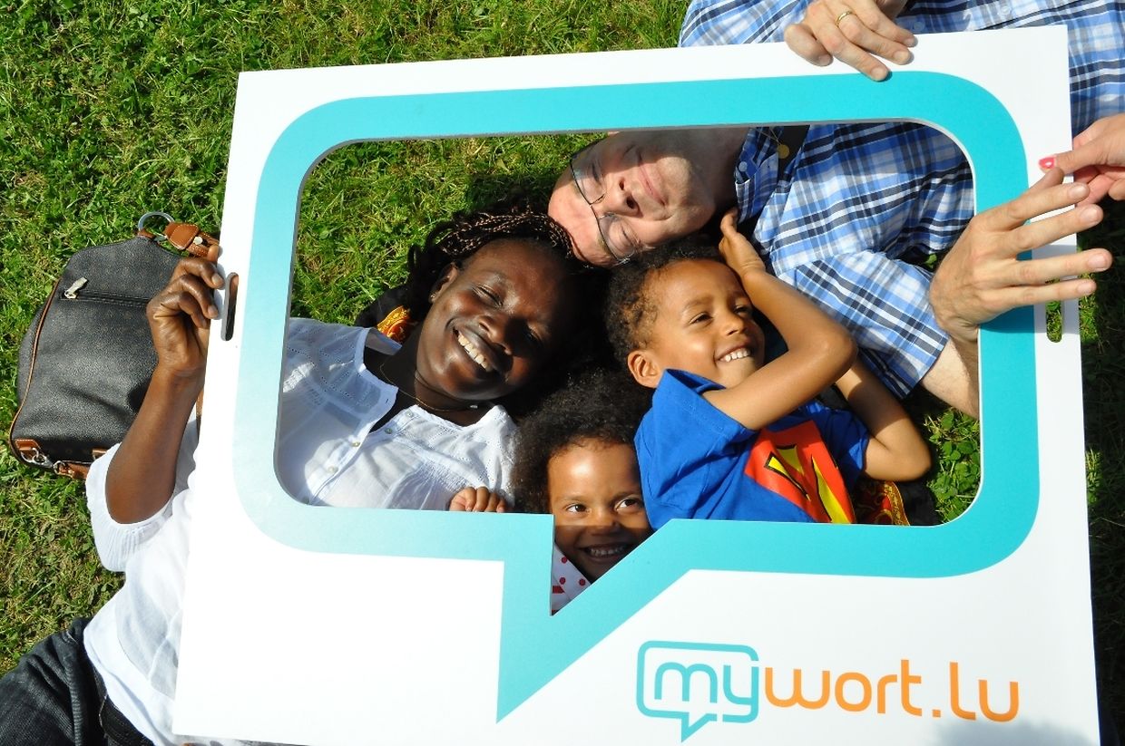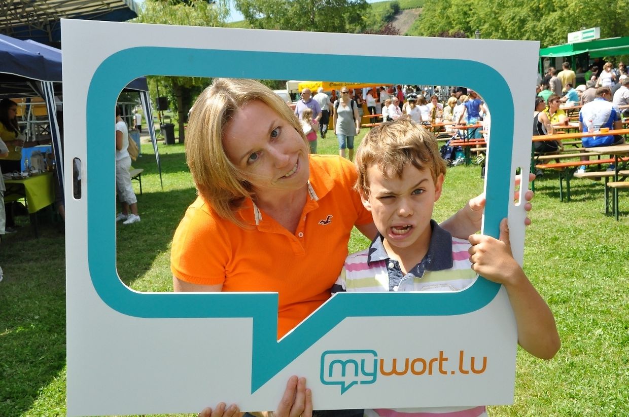 Auch mywort.lu war mit einem Stand vertreten. Hier konnten sich die Besucher in der XXL-Sprechblase fotografieren lassen und damit automatisch am mywort-Gewinnspiel teilnehmen.