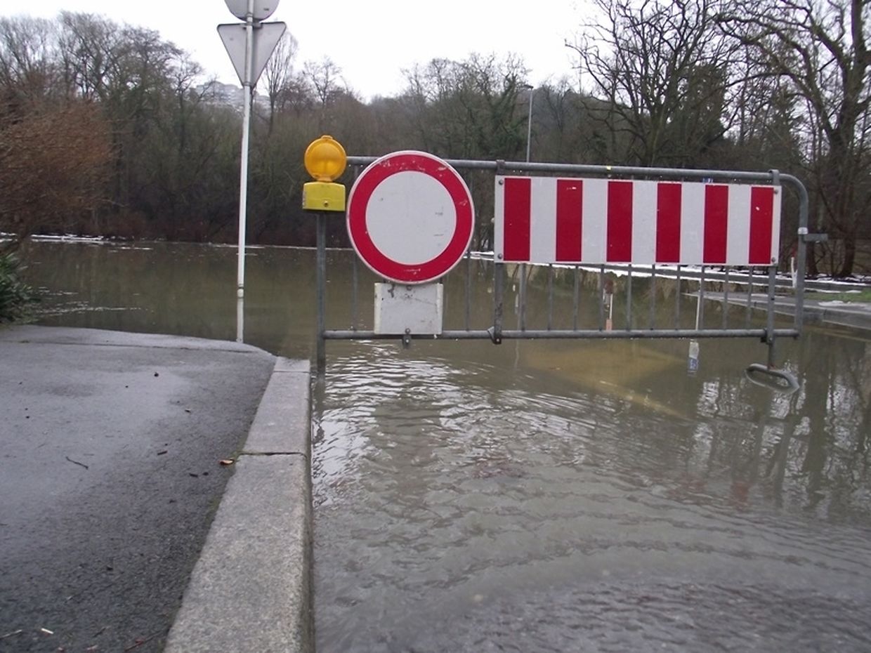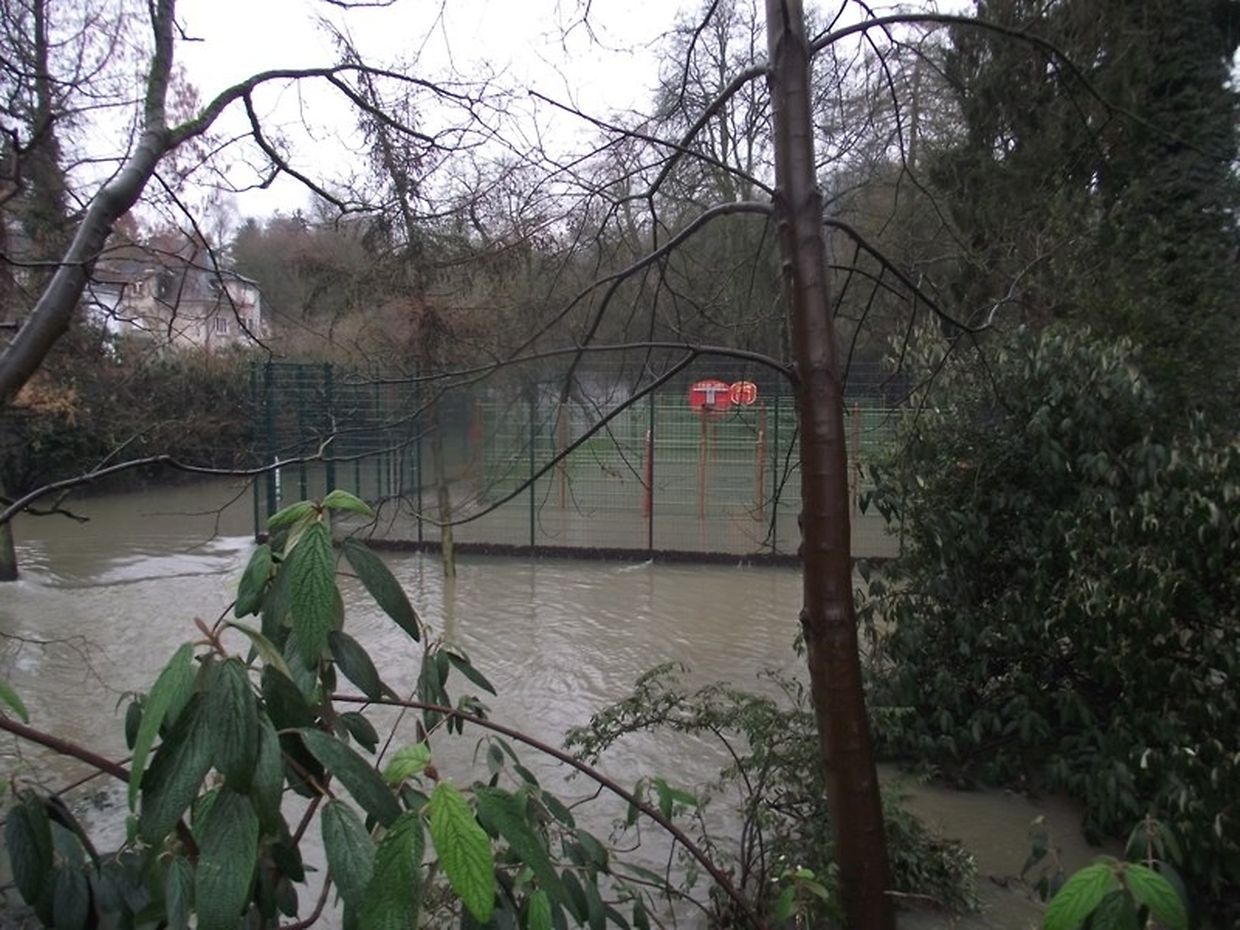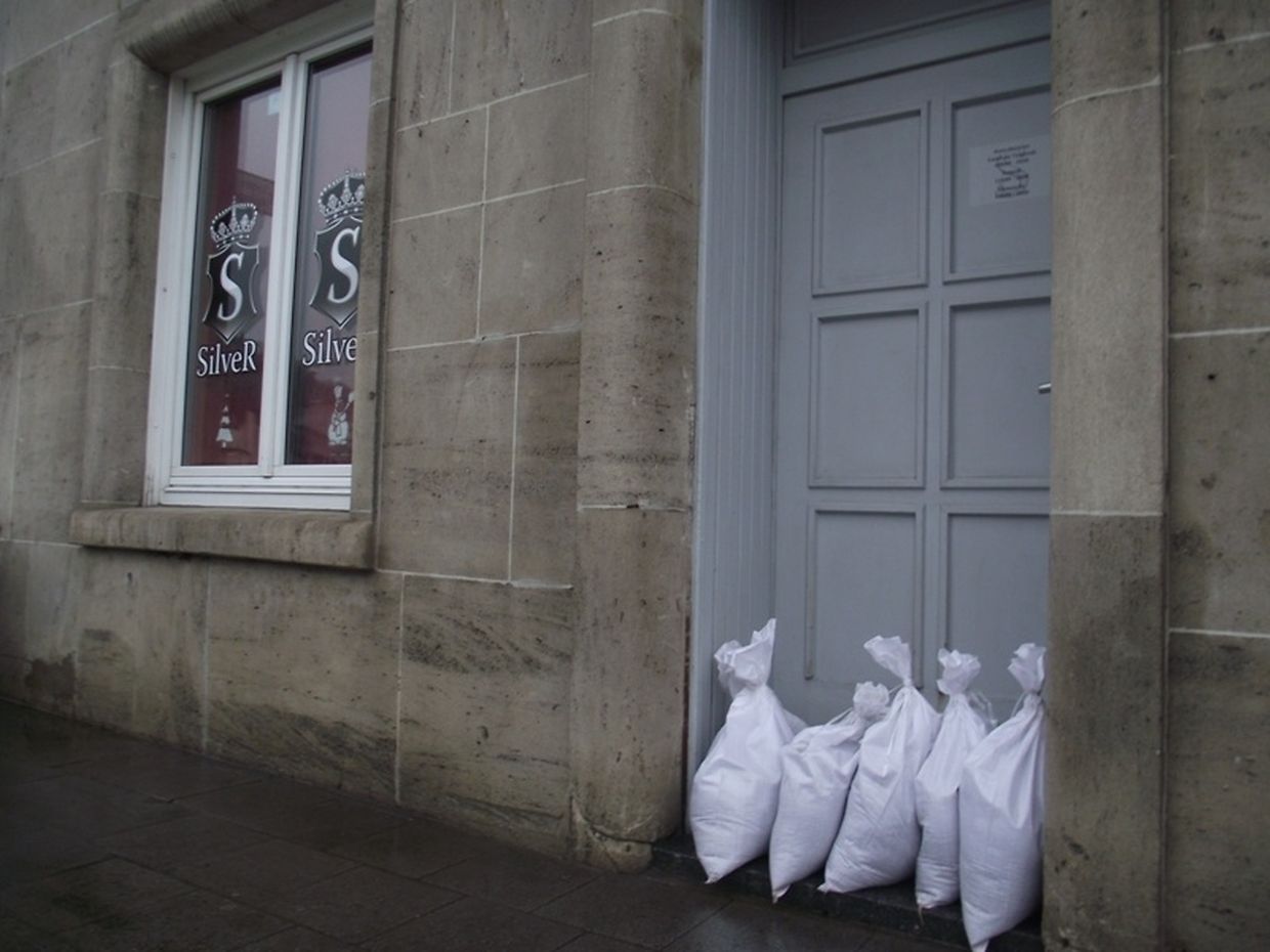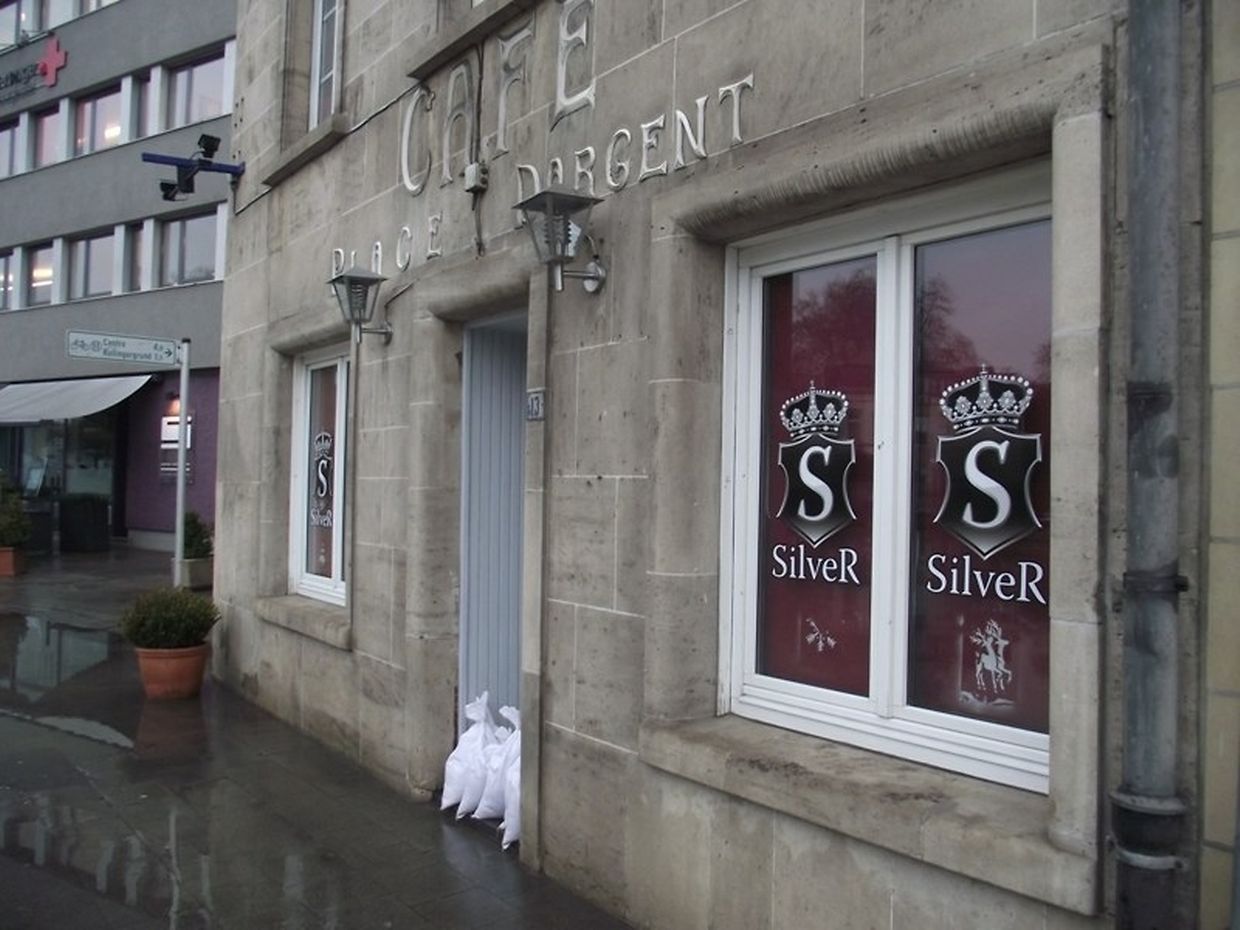 D'Geschäfter op der Place Dargent haten haut naischt ze laachen, well se haten d'Féiss naass. Sandsäck a Stapelversich waren um Programm. Bis ongeféier 3 Auer de Metteg wor d'Place Drgent zou.D'Waasser stung an der Mëtt vun der Strooss bis bal zu de Kneien.