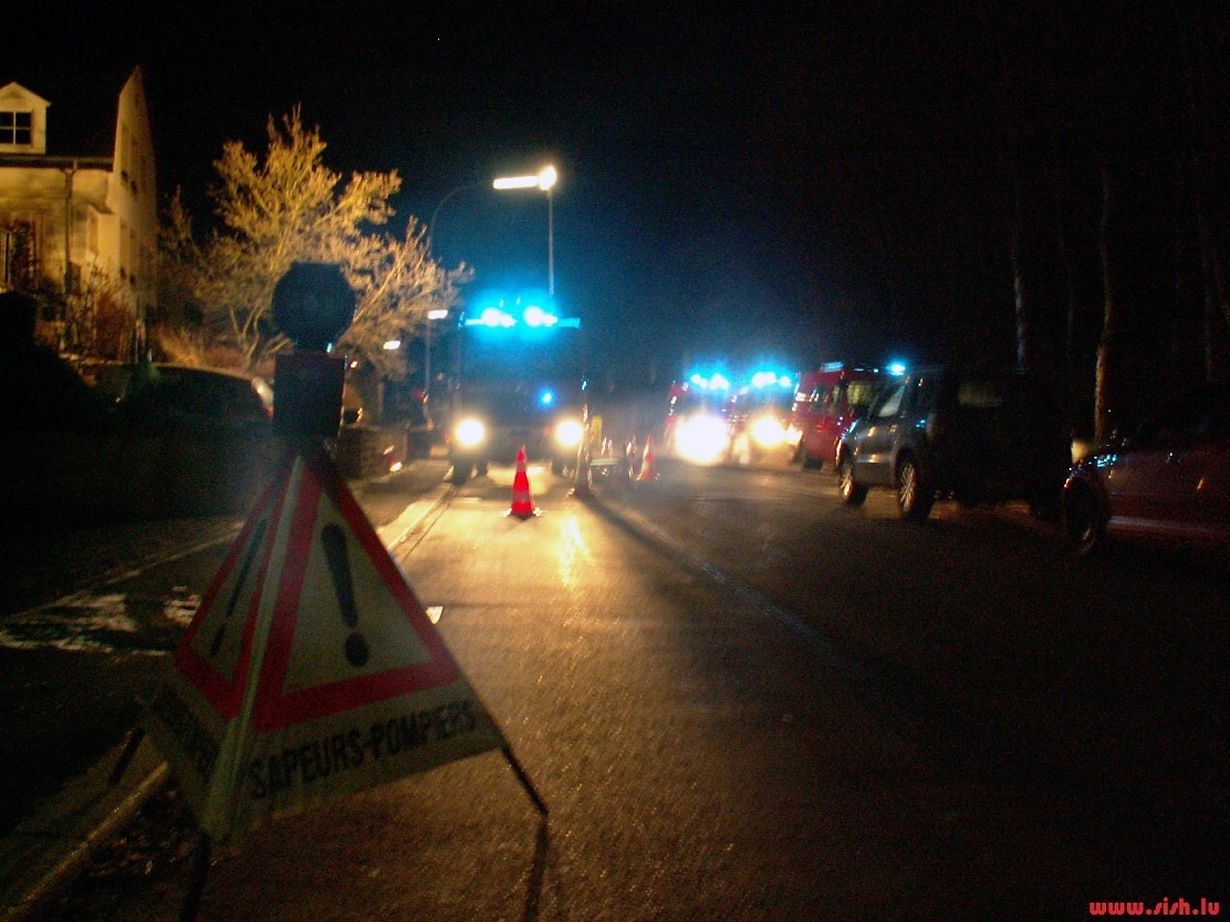Geint 15 Auer gouffen d'Pompjeeën Gemeng Habscht op eng Gasalerte zu Eischen an der rue de Montange geruff.