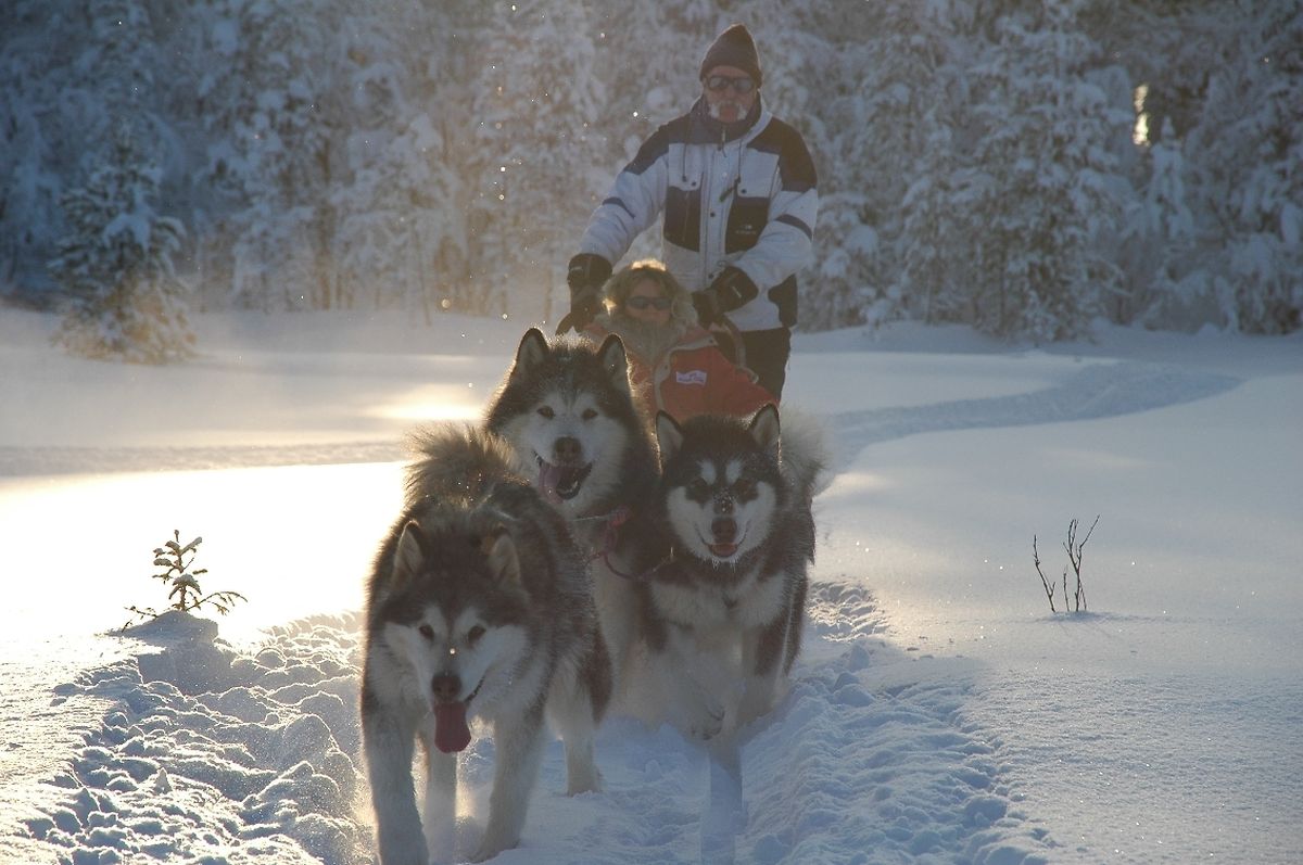 Découvrir les espaces naturels sauvages de la Laponie avec nos Malamutes... Aller à la rencontre de la vie et de l'économie locale au milieu de nulle part... Guetter le spectacle magique des aurores boréales qui dansent les nuits au dessus de nos têtes...