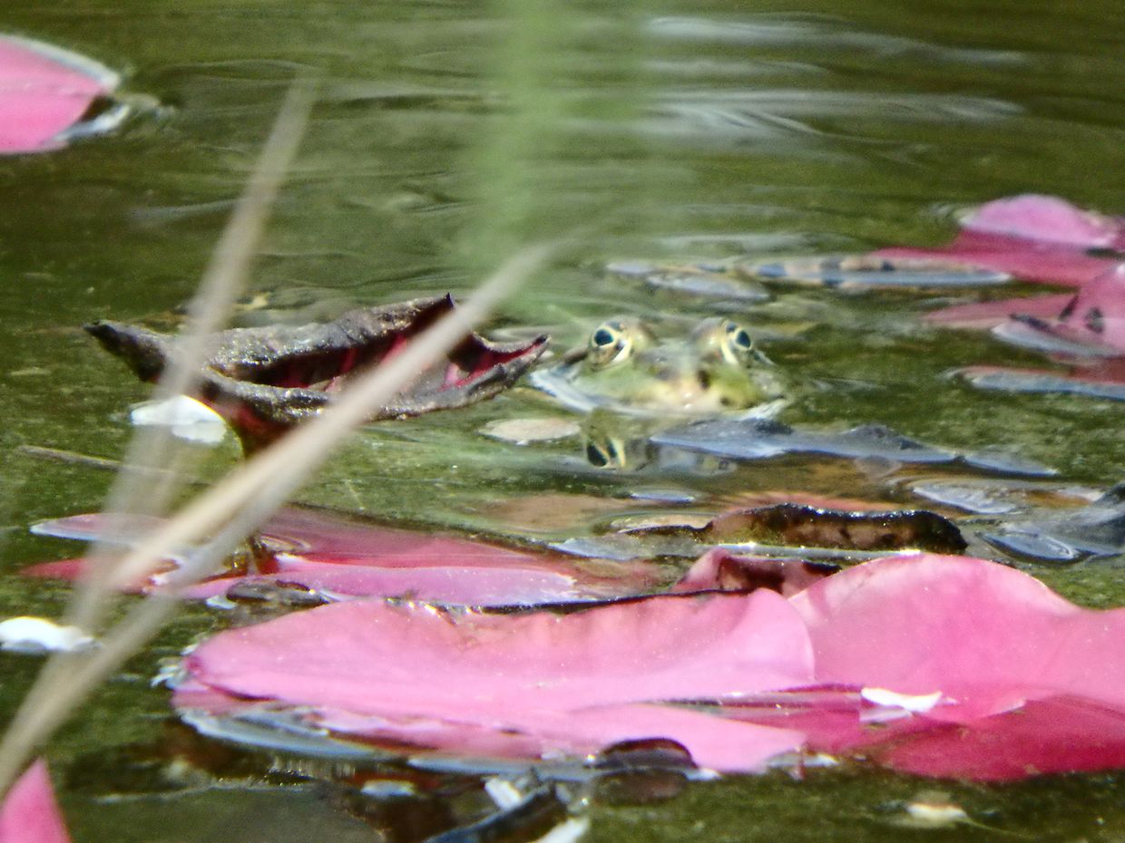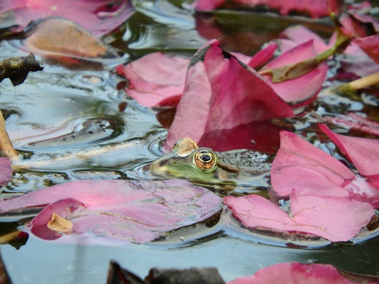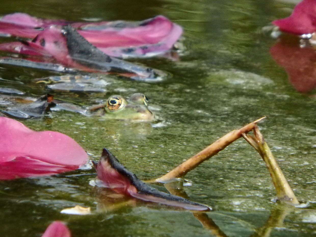 Die milden Temperaturen sowie der Regenmangel haben das Wasser in meinem Gartenteich auf angenehme 17° steigen lassen. Das behagt nicht nur den zahlreichen Fischen, sondern auch zwei Fröschen, die am 20. April 2020 das Frühjahr besonders zu geniessen scheinen. Erstmals geben sie ein Quakkonzert zum besten, wobei an ihren Wangen die üblichen Blasen zu erkennen sind. Die Zeit der Paarung scheint unmittelbar bevorzustehen. Mal abwarten.