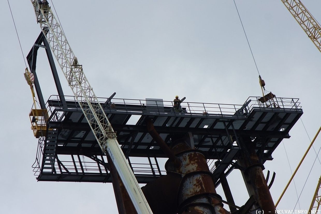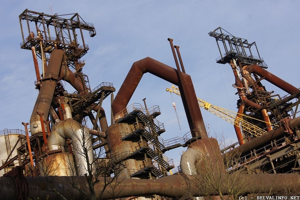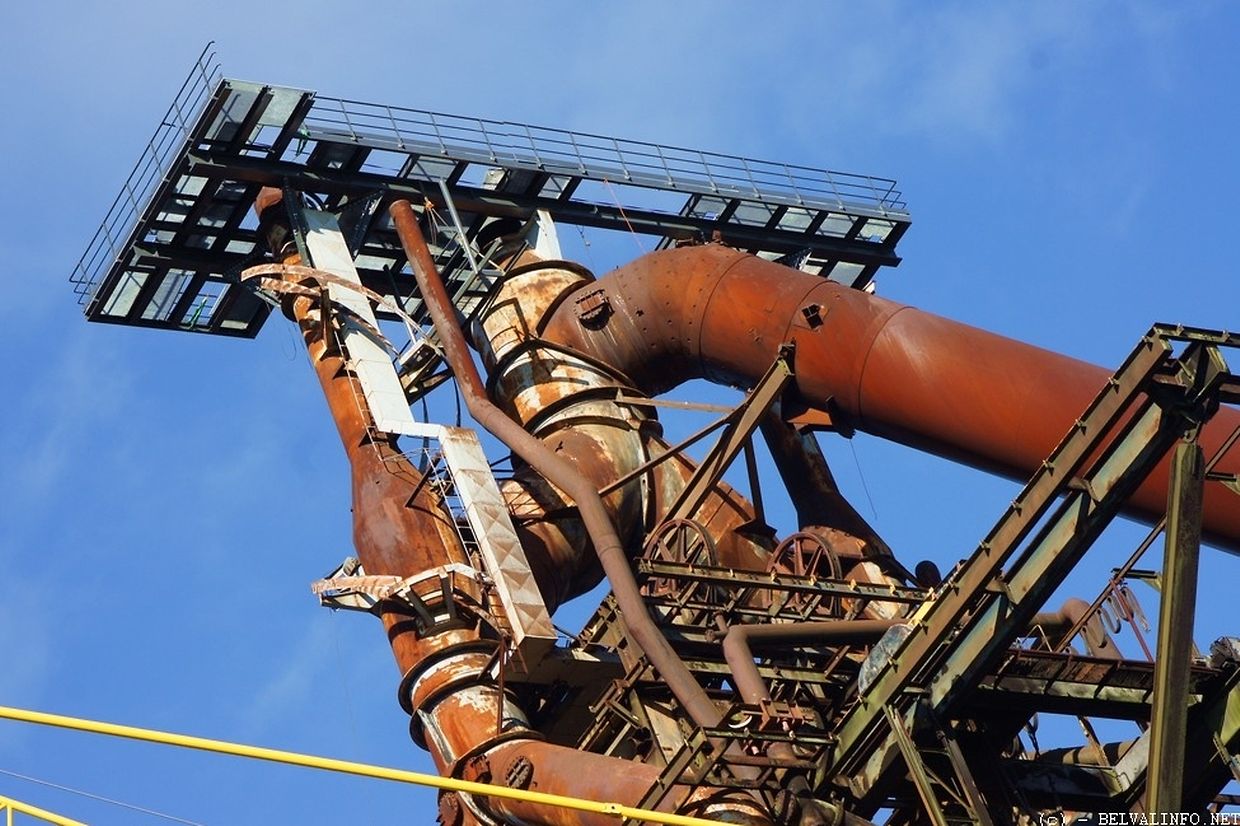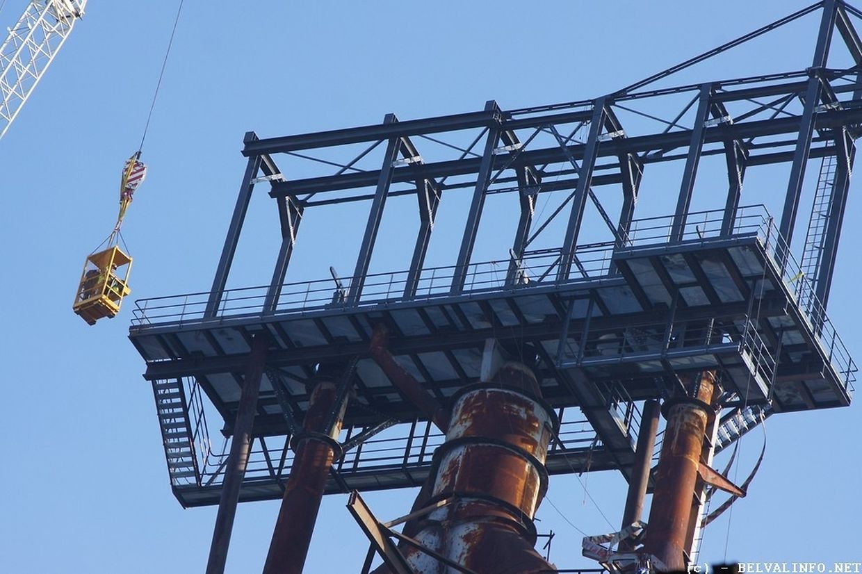 Hochofen B ist seit einigen Wochen von mehreren Kränen umringt, die einer Spezialfirma ermöglichten, die alte „Bleeder“-Bühne wieder auf der Spitze von Hochofen B zu montieren. Die „Bleeder“ sind die ehemaligen Ventile des Hochofens. Die alten Elemente waren verrostet und wurden 2008 abgebaut, um sie zu restaurieren. Die Monteure liessen sich dabei in winzigen Kabinen von den Kränen in die Höhe hiefen, um in 80 Meter Höhe die nicht ungefährliche Montage der Einzelteile der neuen Bleeder-Bühne durchzuführen.