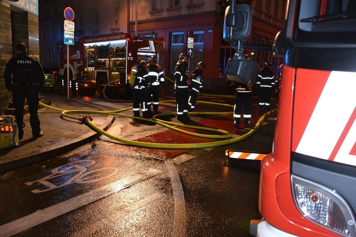 De Moien um 04:35 goufen d’Escher Pompjeeën vum 112 op en Brand an d’rue Dicks geruff, op der Platz hun d’Pompjeeën festgestallt dat eng gréisser Dampëntwecklung an engem Geschäft war, Präventiv gouf dat ganzt Appartementshaus evakuéiert.Et hatt sech festgestallt dat et an engem Ofstellraum géif brennen.D’Feier woar séier geläscht an et ass kengem eppes geschitt.Op der Platz woar den Escher Asazzenter CISEA, Pompjeeën mat 6 Ween an 16 Leit an eng Ambulanz vun der Escher Protex, an den Regionalinspekter Bernar Guy.