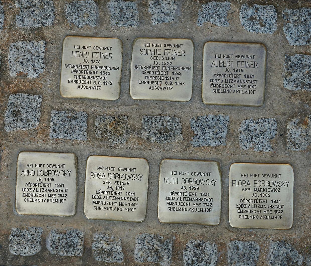 2013 und 2021 wurden in Esch auf Initiative des “Musée national de la Résistance et des Droits humains » und der « Frënn vum Resistenzmusée » 31 Stolpersteine vor den jeweiligen letzten Wohnungen der Nazi-opfer verlegt. 30 davon erinnern an jüdische Deportierte aus Esch, die in den Todeslagern von den Nazis umgebracht wurden ; ein Gedenkstein wurde zu Ehren vom Resistenzler Hans Adam gelegt, welcher geköpft wurde weil er beim nationalen Streik im September 1942 das Alarmsignal in der Schmelz ausgelöst hatte.
