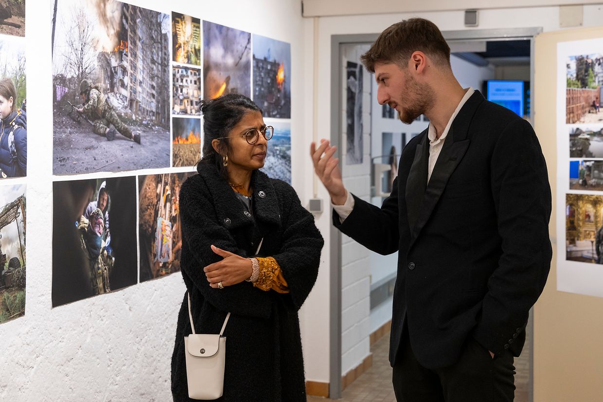 Un autre photographe notable qui a contribué à l'exposition est Evgeniy Maloletka, un photographe de guerre, journaliste et réalisateur ukrainien. Son travail a été récompensé avec deux autres journalistes par le prix Pulitzer 2023. Il a également remporté le prix World Press Photo de l'année 2023 pour sa photographie saisissante intitulée "Mariupol Maternity".