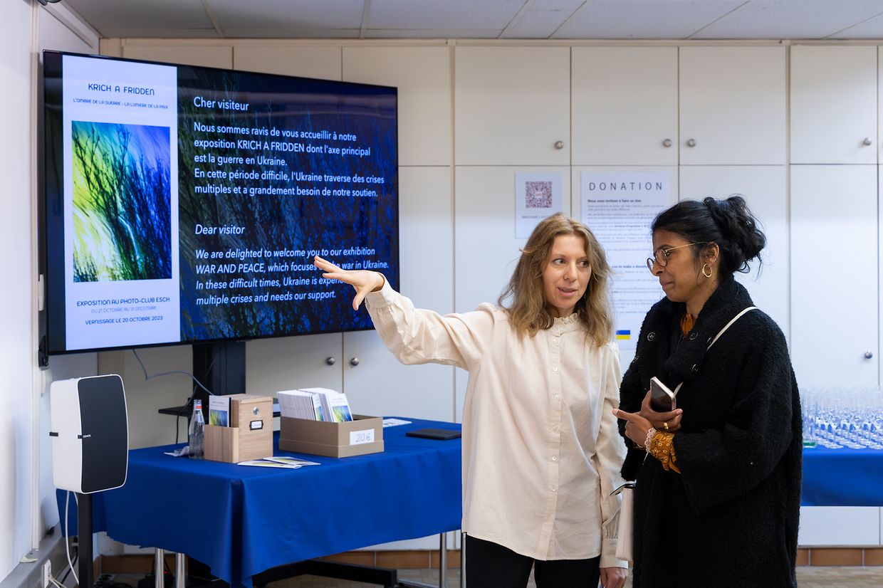 Le 20 octobre 2023, le Photo-Club Esch organisa un vernissage exceptionnel pour l'exposition "Guerre & Paix" dans sa Galerie d'art, en présence du Consul Honoraire d’Ukraine M. Claude Radoux, de Mme Olena Klopota, Secrétaire Générale de l’asbl LUkraine ainsi que des représentants de la Commune d’Esch-sur-Alzette, M. Pim Knaff, Mme Dahlia Scholl, M. Ben Funck et M. Daniel Codello.