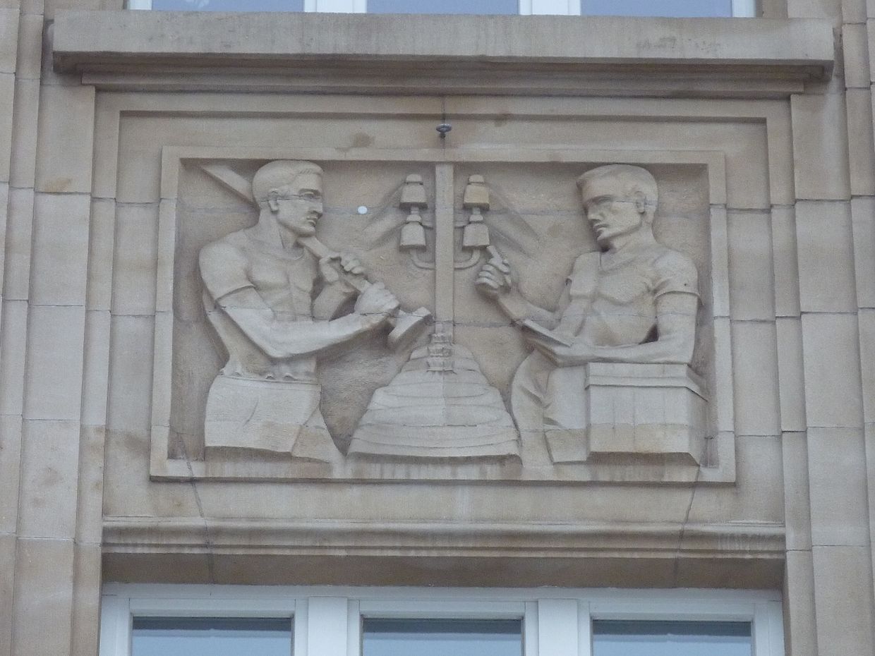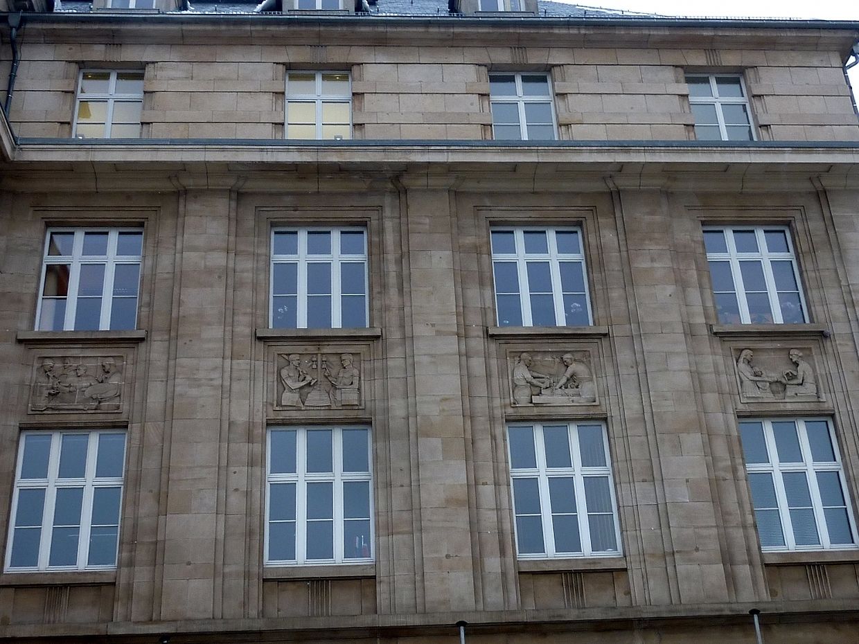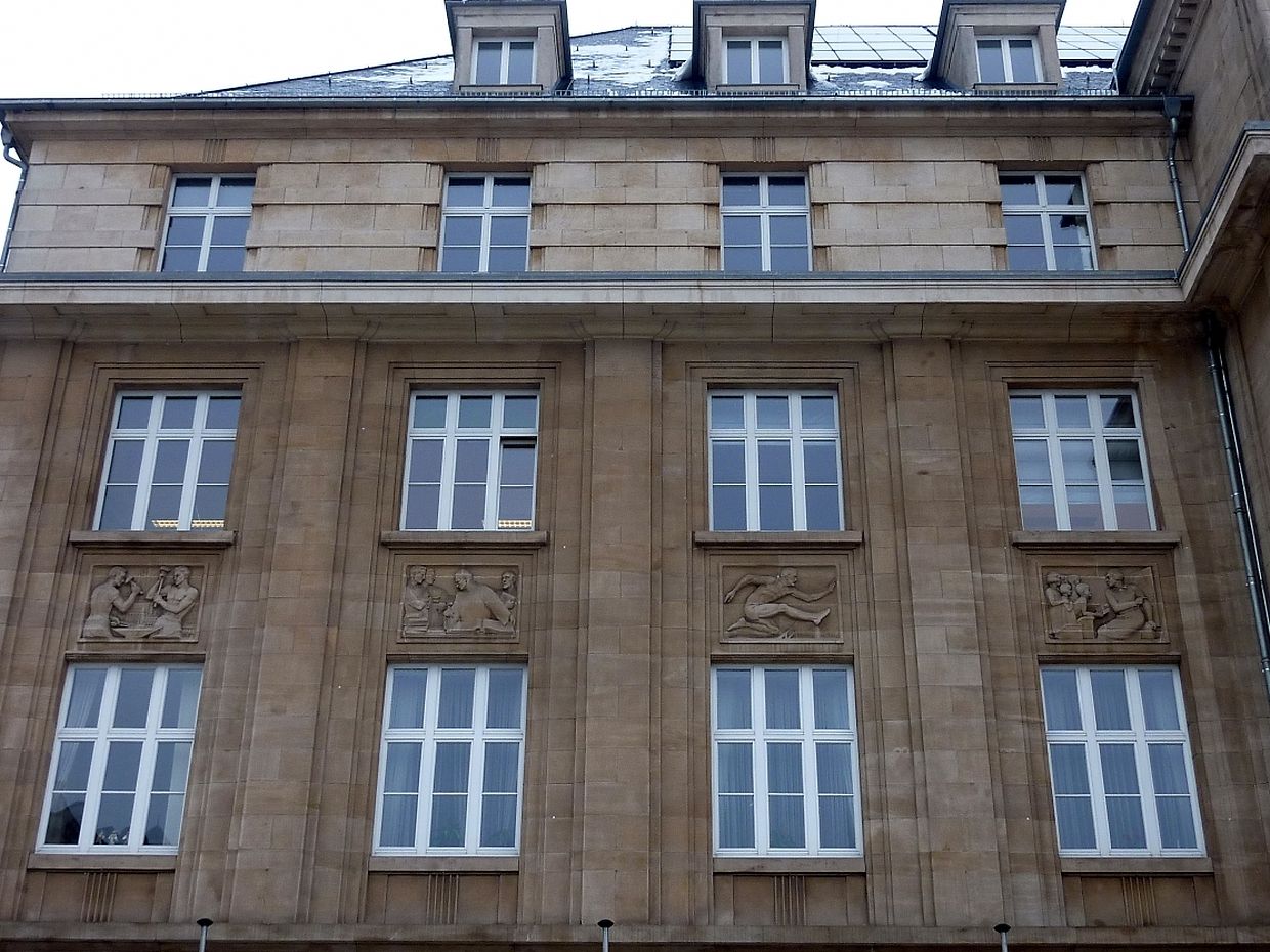 Am 15.August 1937 wurde das neue Rathaus eingeweiht.An der Hauptfassade befinden sich mehrere Flachreliefs von verschiedenen Künstler, darunter auch von Claus Cito.Da die Künstler ihre Werke nicht gekennzeichnet haben ist es schwierig ihnen die einzelnen Werke zu zuordnen.Die anderen Künstler sind Hary Frères, Albert Kratzenberg, Wenzel Profant und Aurelio Sabbatini.