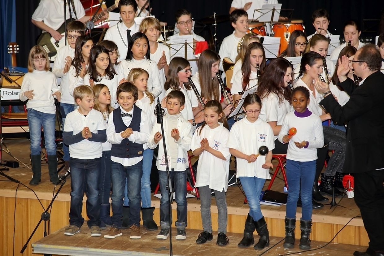 Nach drei Einlagen wurde dann vom Orchester einer der Hits des Jahres 2014 musikalisch interpretiert: „Happy“ von Pharell Williams. Hier holte sich das 55- köpfige Jugendblasorchester (davon nur 4 Musiker über 25 Jahren), zusätzlich 15 der jüngsten Mitglieder der HME auf die Bühne, die während des Stücks eifrig den Rhythmus mitklatschten und mitmusizierten. Die HME, in der sich Isabelle Boultgen und Désirée Pianon seit Januar 2014 für die Jugendarbeit verantwortlich zeichnen, ist eine große Familie und stolz auf ihren musikalischen Nachwuchs. Dies unterstrich ebenfalls der Präsident der Escher Phalanx Emile Werner in einer kurzen Ansprache.