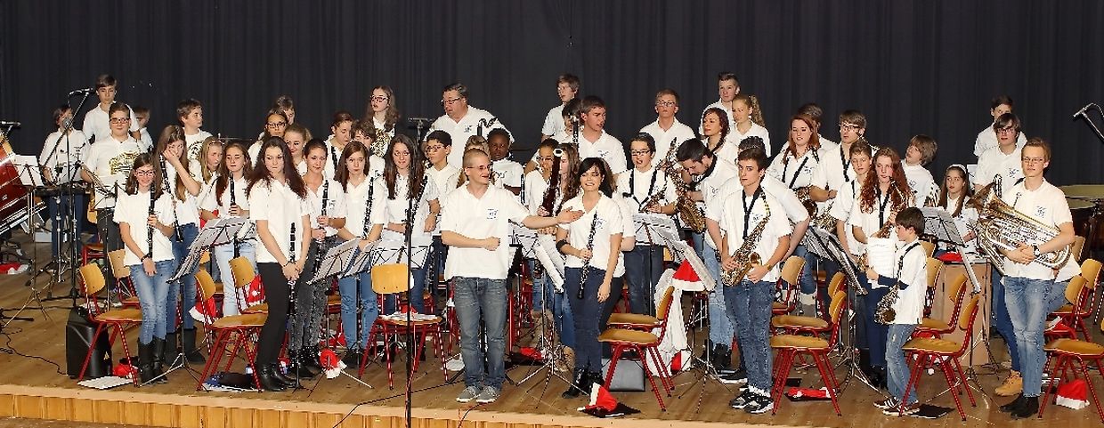 Der Weihnachtsmann durfte an diesem Abend natürlich auch nicht fehlen. Er beschenkte nicht nur die fleißigsten und erfolgreichsten Jungmusiker, sondern erinnerte auch an so manche witzige Episode des abgelaufenen Jahres. Das Konzert, durch das Daniel Ascani führte, endete mit den Weihnachtsliedern „Rudolph around the world“ und „In the Christmas Mood“. Während dann unter den Anweisungen von Laurent Kohn die Bühne wieder von jungen Musikern abgebaut und der Lastwagen beladen wurde, konnten noch das eine oder Glas getrunken und Wort gewechselt werden.