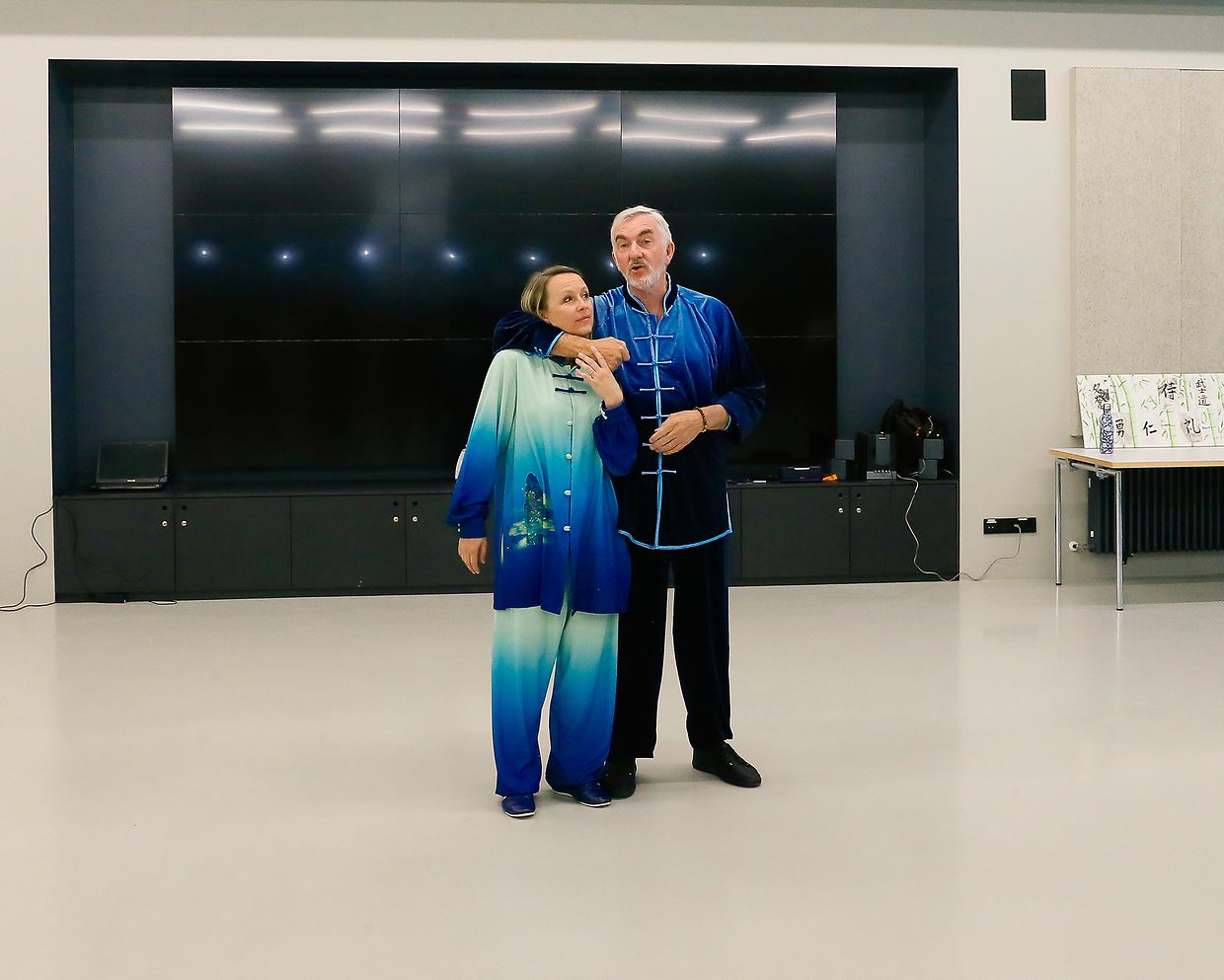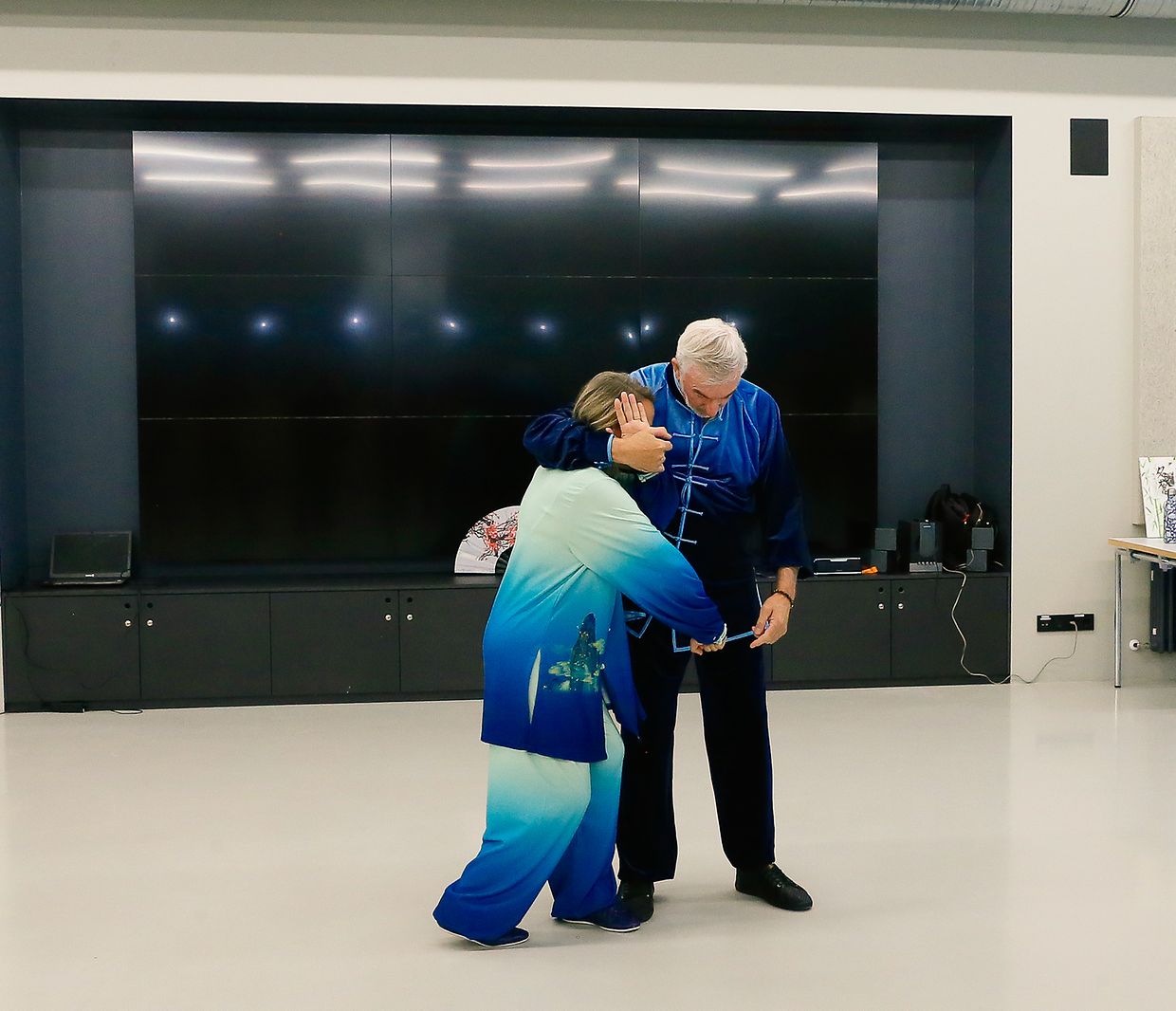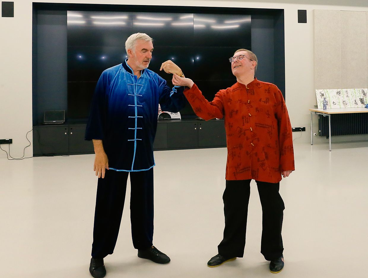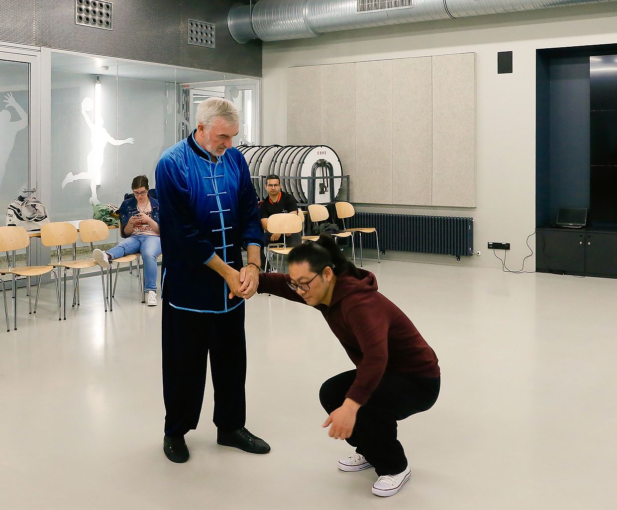 Unter der Leitung der charmanten Professorin von Tai Chi und Weltmeisterin von 2021, Barbara Delaere, wurden zunächst einige Bewegungsabläufe geprobt. Anschließend zeigte „Sifu“ (gleichbedeutend mit Lehrer oder Meister) Gerald Begaert überzeugend, wie diese Bewegungen zur Selbstverteidigung genutzt werden können. Was anfangs vielen als unvorstellbar erschien, erwies sich als sehr überzeugend und begeisterte das Publikum. Aktiv mitmachen war das Motto.