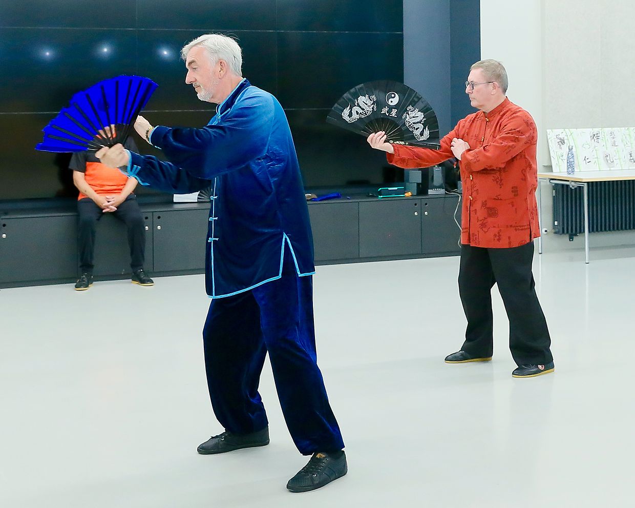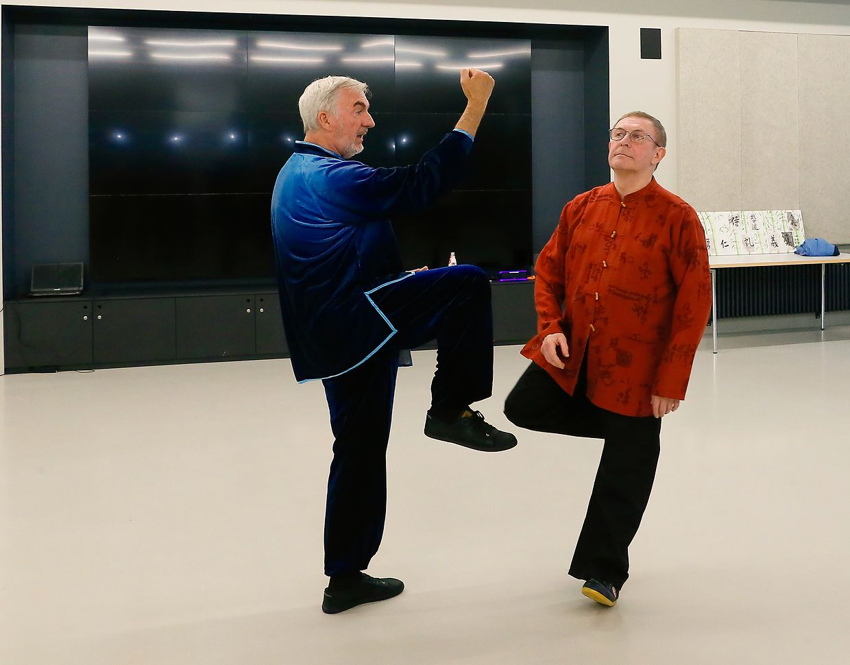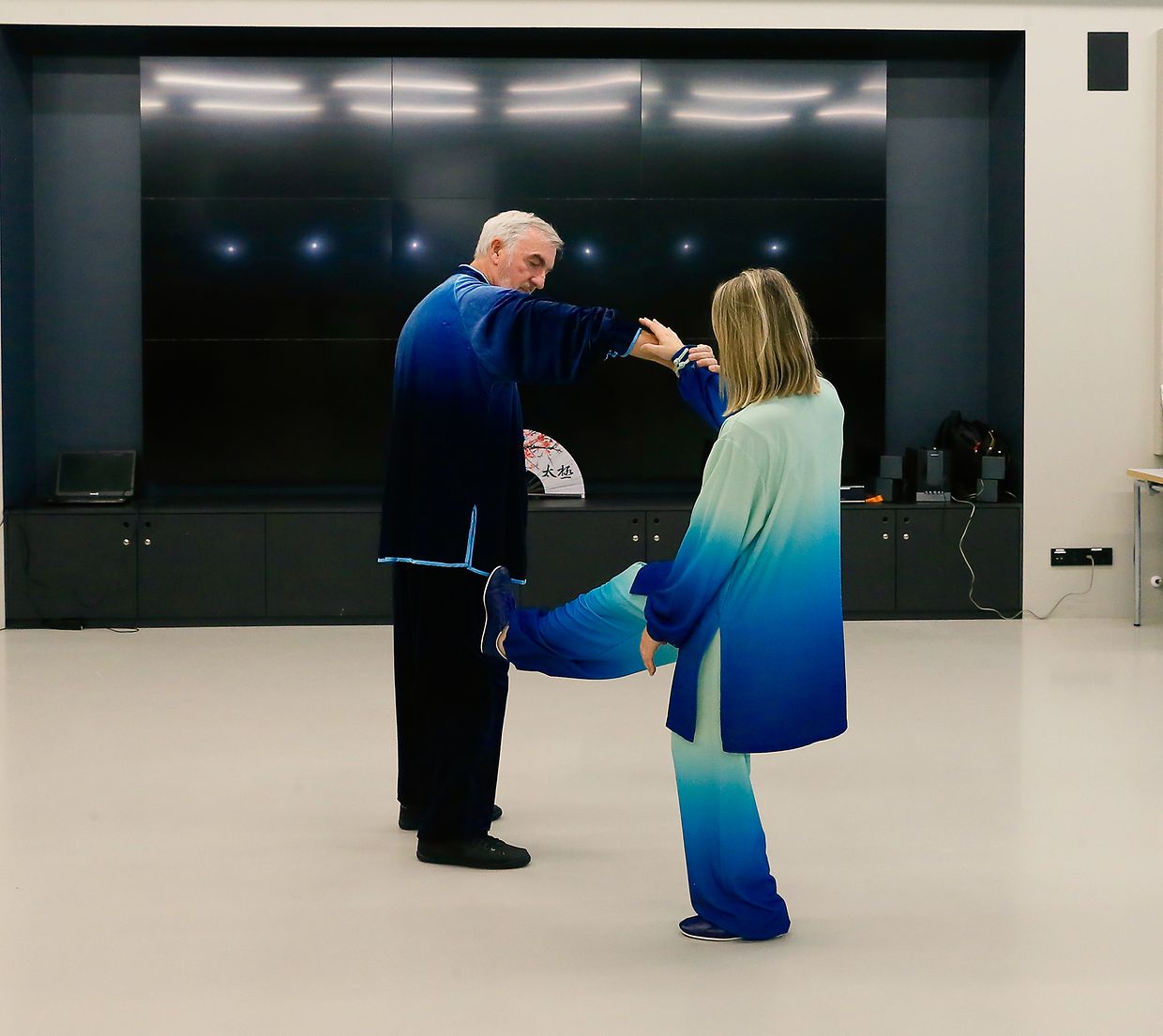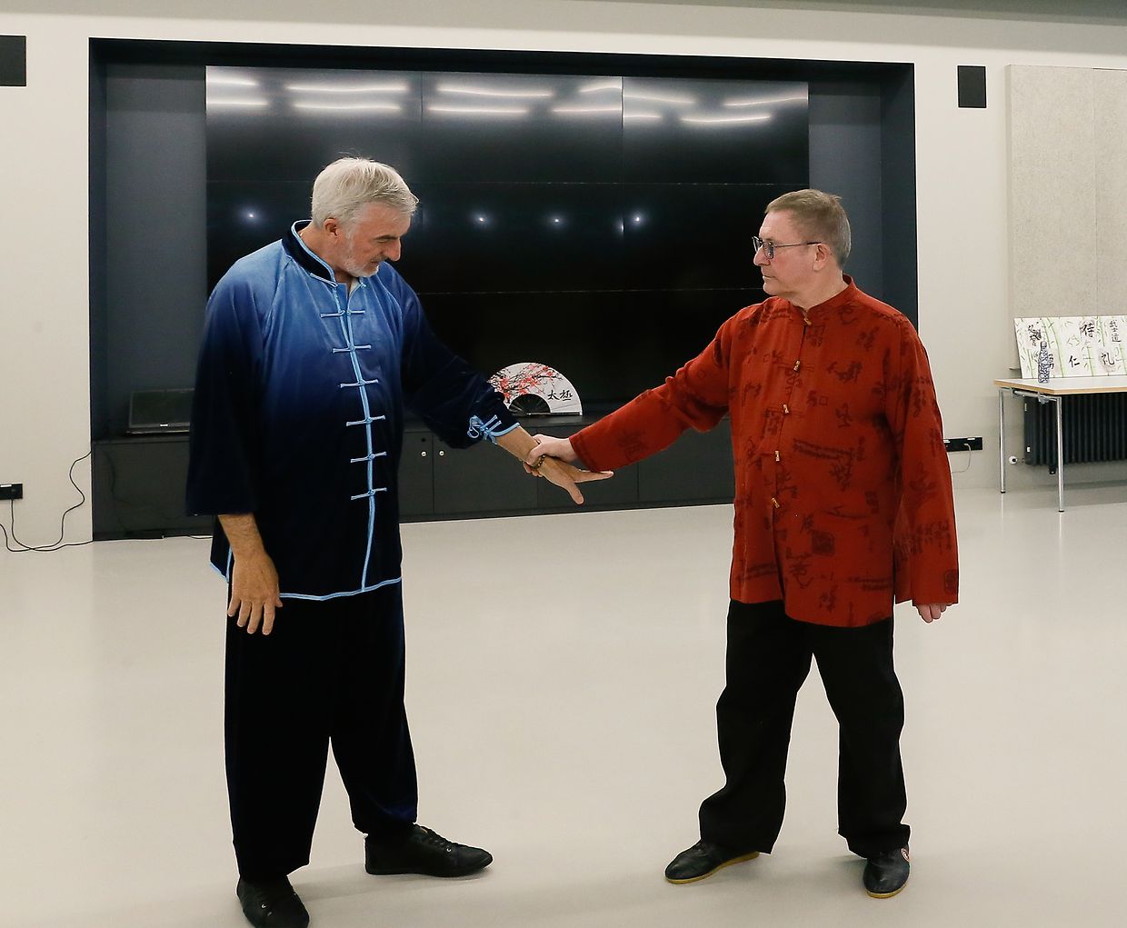 Unter der Leitung der charmanten Professorin von Tai Chi und Weltmeisterin von 2021, Barbara Delaere, wurden zunächst einige Bewegungsabläufe geprobt. Anschließend zeigte „Sifu“ (gleichbedeutend mit Lehrer oder Meister) Gerald Begaert überzeugend, wie diese Bewegungen zur Selbstverteidigung genutzt werden können. Was anfangs vielen als unvorstellbar erschien, erwies sich als sehr überzeugend und begeisterte das Publikum. Aktiv mitmachen war das Motto.