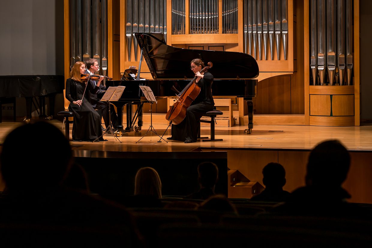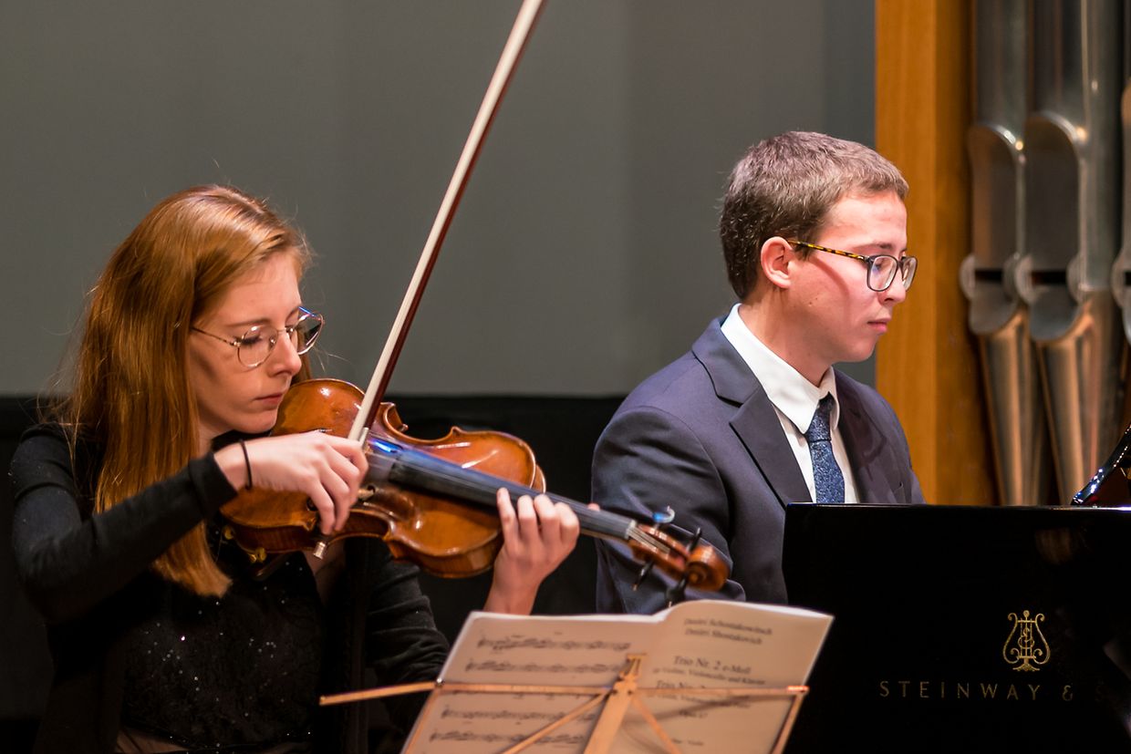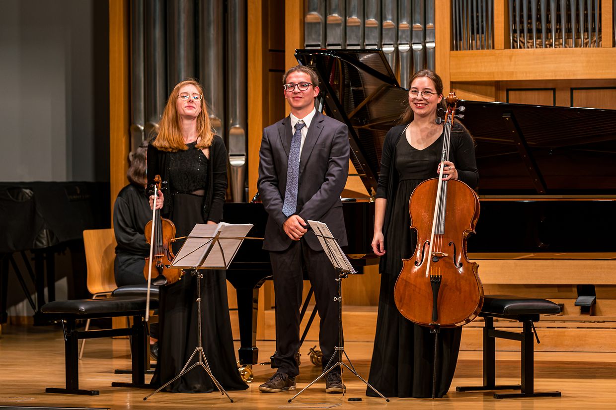 Am 17. Oktober nun stand erstmals wieder ein Konzert dieser Reihe auf dem Programm. Laurène Schuller (Violine), Valérie Stammet (Violoncello) und Florestan Goffinet (Klavier) beeindruckten das Publikum mit Werken von Wolfgang Amadeus Mozart und Dmitri Chostakovitch. Somit hatte das Trio zwei Klassiker in dieser Matinee in ihr Programm aufgenommen, was offensichtlich gut bei den Zuhörern ankam.